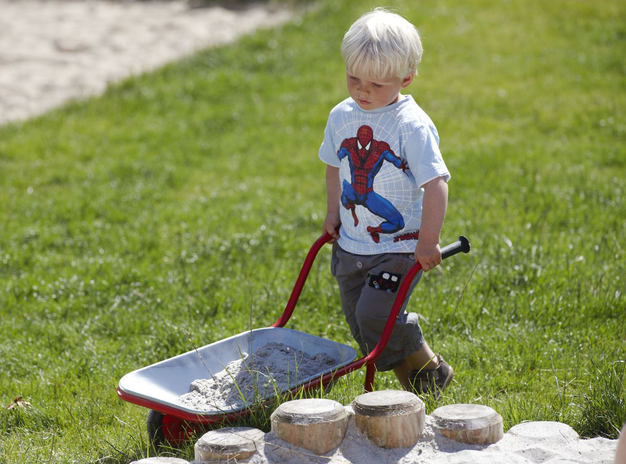 zum Transportieren von Materialien.Darin können die Kinder mit Sand und