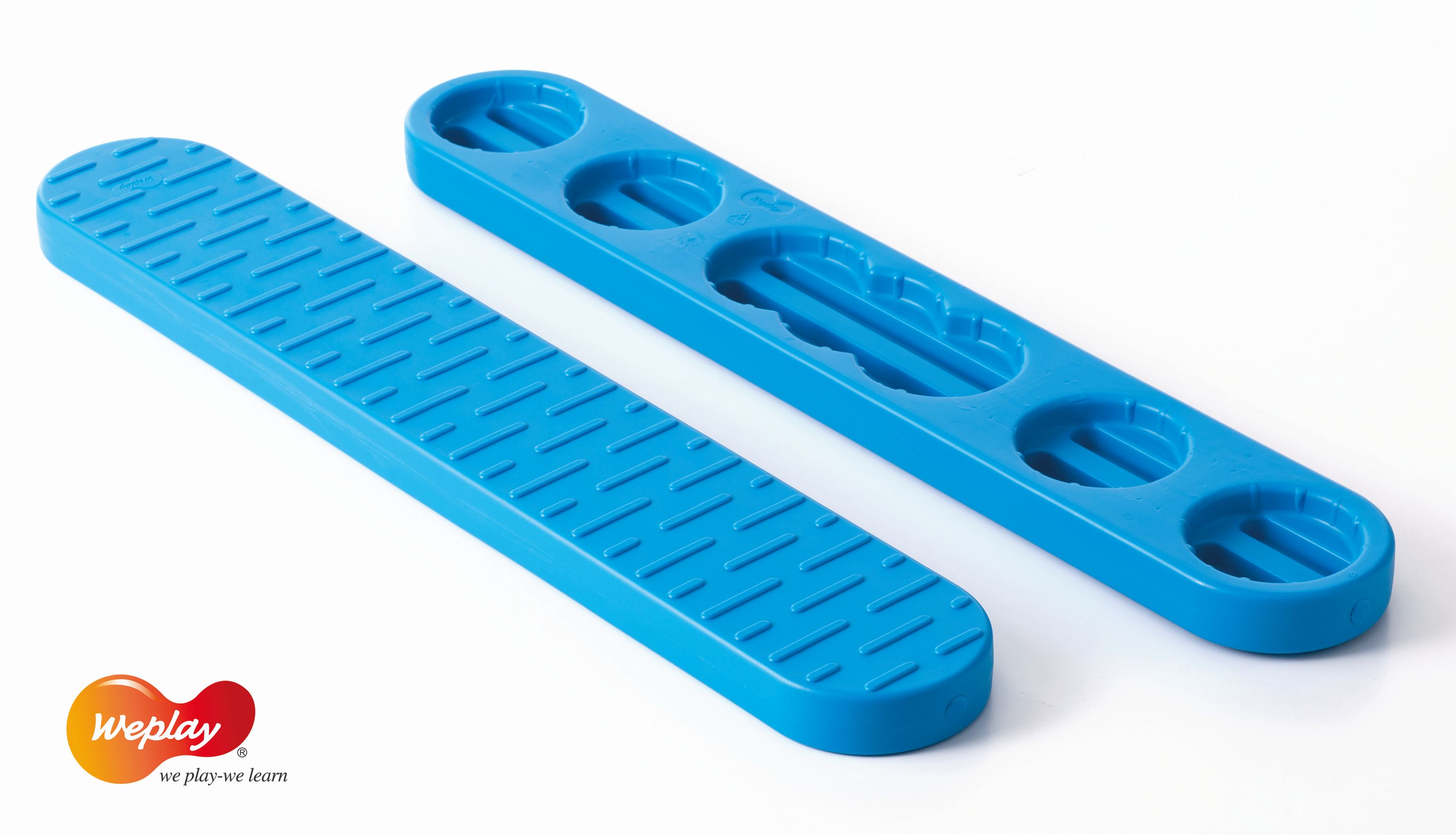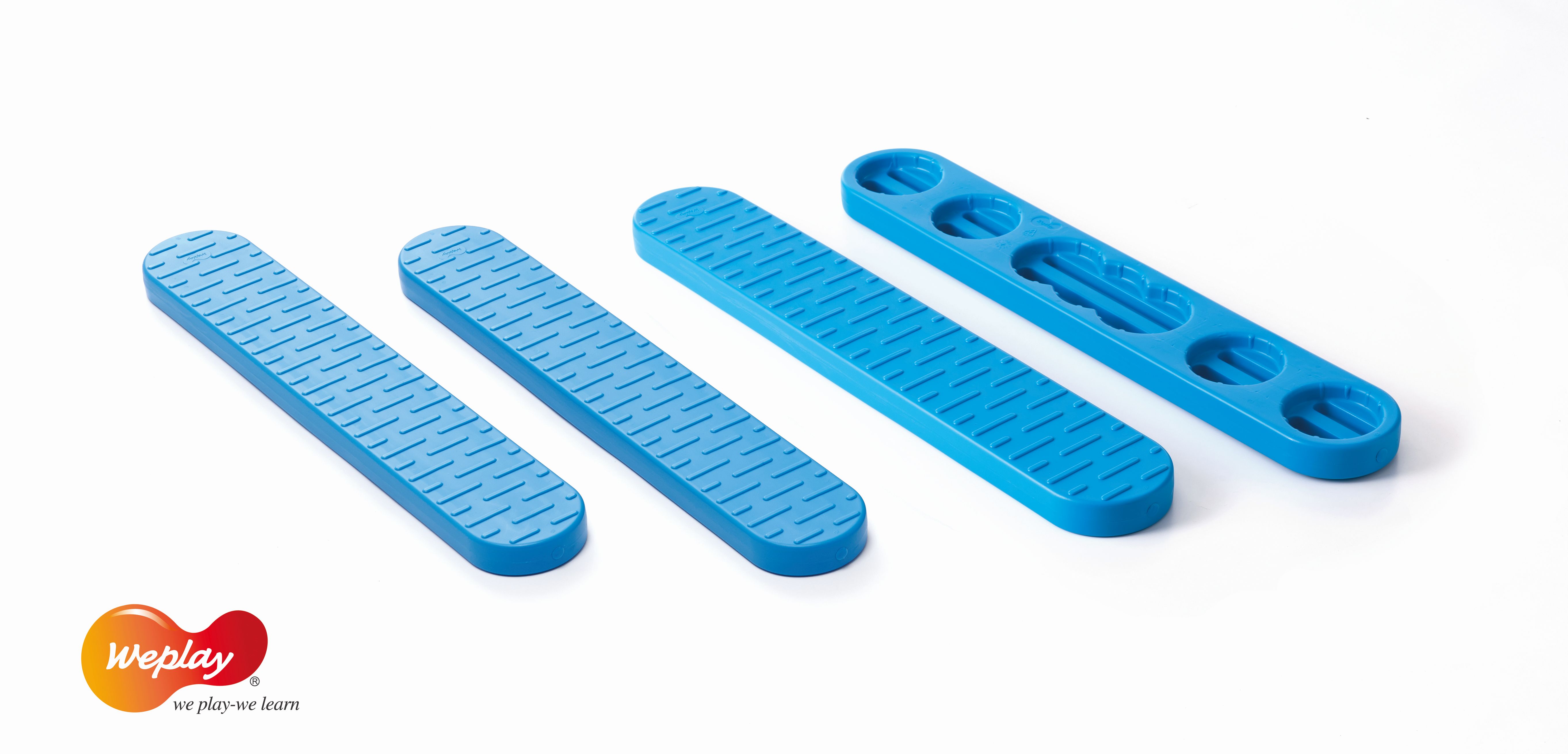 Punkte und Streifen... Muster auf den Elementen lassen Kinder beim barfüßigen Drüberlaufen unterschiedliche Sinneseindrücke erfahren. Harte und weiche Aspekte im Material sorgen für dynamische Balanciererfahrungen, wobei die Kombination aus Farbe, Struktur und Richtung der Oberflächen immer wieder neue Laufwege ermöglichen. Produkt Vorteile: sehr hohe tactile Intensität, verbessert die Balancierfähigkeit in der Entwicklung des Kindes,steigert die physische Koordination Balanceentwicklung auf 2 Arten der Körperbewegung: Durch Übungen mit einem Fuß oder beiden Füßen, Entwickelt die Reaktionsfähigkeit und das räumliche Vorstellungsvermögen durch verschieden angeordnete Routen, Verbessert das Selbstvertrauen und die Reaktionsgeschwindigkeit. Auch in Kombination mit den Regenbogenflusssteinen KT0008, Regenbogenwegen KT0009-00B und -00G sowie den Honey Hills KT0016 variabel einsetzbar. Details:Inhalt: 2 x grün (Punkte) 2 x blau (Streifen) In einer schwarzen TragetascheMaterial: hochwertiger thermoplastischer KunststoffMaße: ein Element 23,7 x 31,5 x 4,5 cmAltersempfehlung: ab 3 Jahre