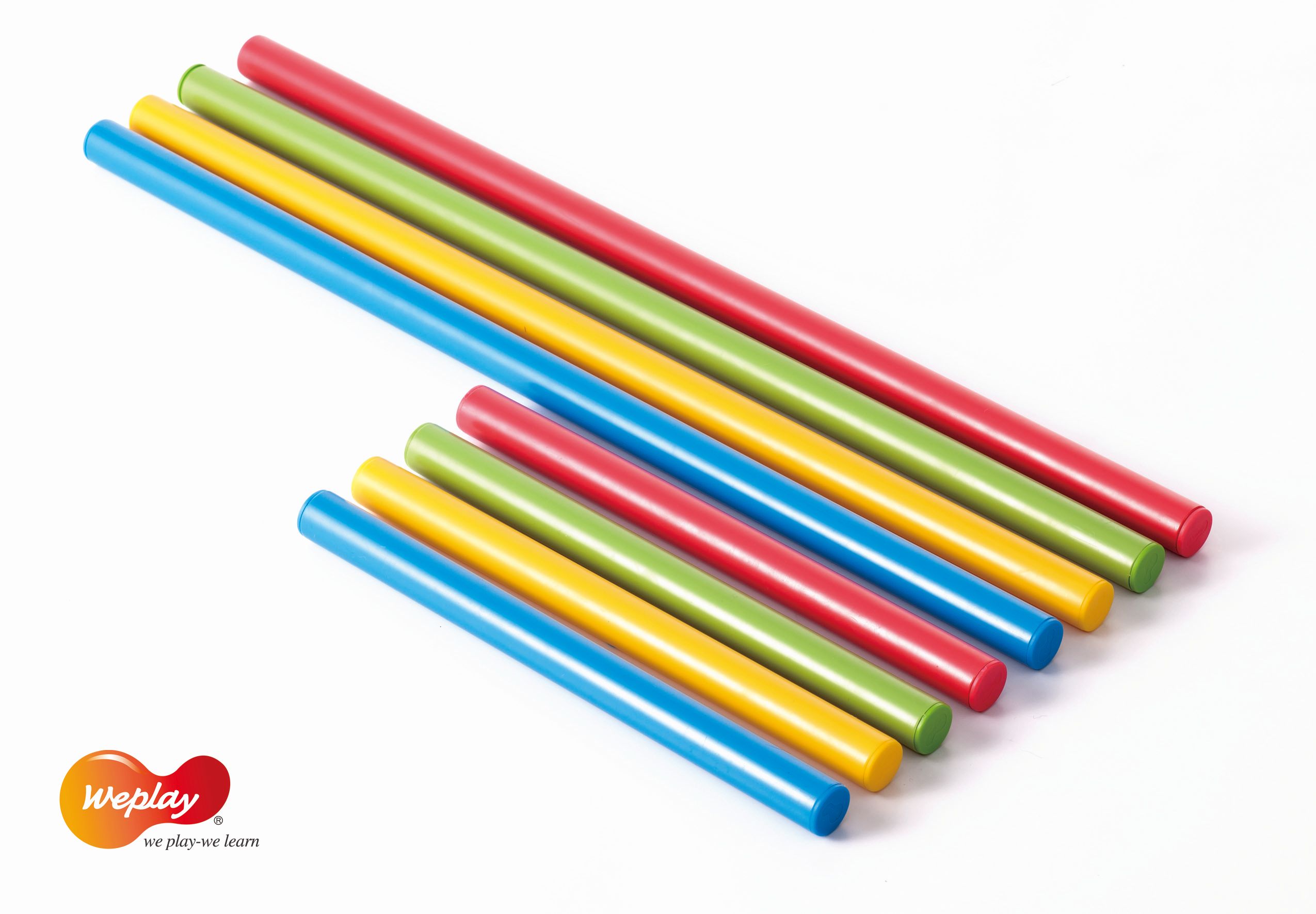 Kunststoffspiegel. Die sechs unterschiedlichen Farben der Balanciersteine