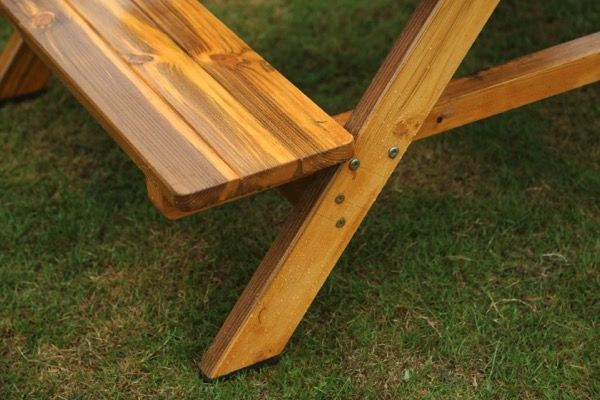 besteht aus kesseldruckimprägniertem Kiefernholz aus nachhaltiger Forstwirtschaft. Die Füße sind aus wetterfestem WPC.