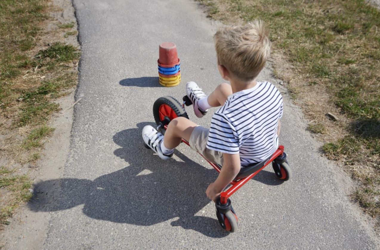 Fahren mit diesem Dreirad stimuliert motorische und