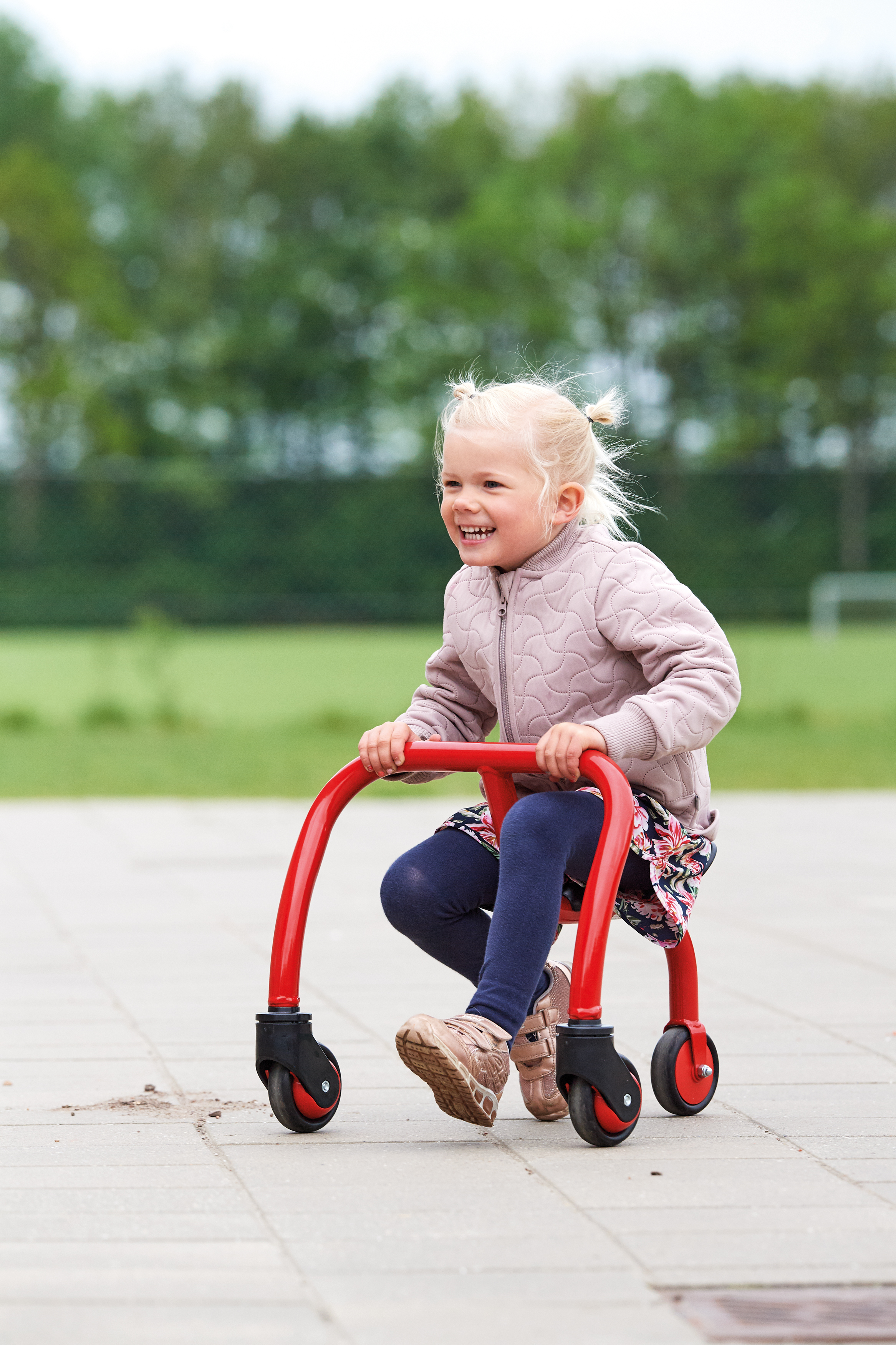 Entspannt cruisen! Dieses tolle Gefährt bietet ein besonderes Fahrgefühl dank seines tiefen Sitzes mit Lehne und der hohen Lenkvorrichtung. Der Sitz lässt sich je nach Kindergröße passend verstellen.Details:⦁ Verstellbarer Sitz⦁ Lenkeinschlag und Anschlagdämpfer für mehr Sicherheit⦁ Robuster, pulverbeschichteter Rahmen für höchste Stabilität und stoßfeste Lackierung⦁ Lange wetterfeste Kunststoffsitze-passend für verschiedene Altersgruppen⦁ Räder mit geschlossenem, dauergeschmierten Industriekugellager für leichtes Fahren⦁ Speichenlose Räder⦁ Hochwertige, massive Achse aus gehärtetem Stahl⦁ Starker Metallrahmen mit 22 mm Durchmesser⦁ Spezialpedale mit Gumminoppen verhindert ein Abrutschen der Füße⦁ Durchgeschäumte EVA-Reifen für lange Lebensdauer und leises Fahren⦁ Robuste Handgriffe mit verstärkter Kappe und Gumminoppen für soliden Halt⦁ Wissenschaftlich getestet⦁ Entwickelt mit einem Team aus führenden Pädagogen, Ingenieuren und Produktdesignern⦁ 5 Jahre Garantie auf den Rahmen⦁ 1 Jahr Garantie auf alle beweglichen Teile⦁ Umfassender Ersatzteil-Service⦁ Geprüft nach EN 71Lenkerhöhe: 66 cmSitzhöhe: 17 cmLänge: 96 cmBreite: 59Lenkerbreite: 48 cmGewicht: 11,0 kgAltersempfehlung: ab 4 Jahre Umfassender Ersatzteilservice