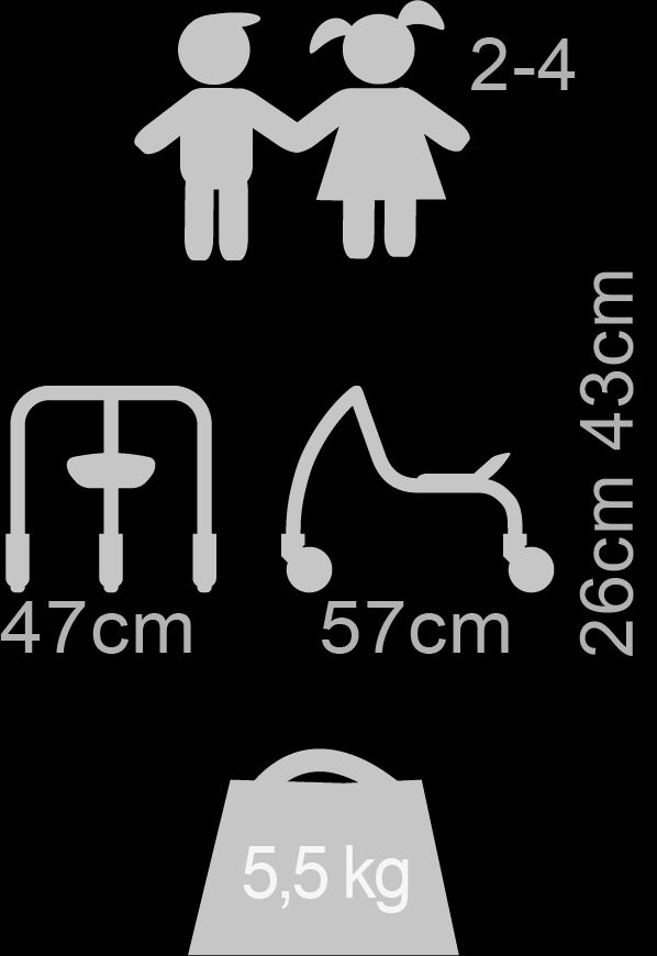 L/B/H: 60 x 60 x 91,3 cmGewicht:⦁ 6,5 kgAltersempfehlung: ab 4 Jahre