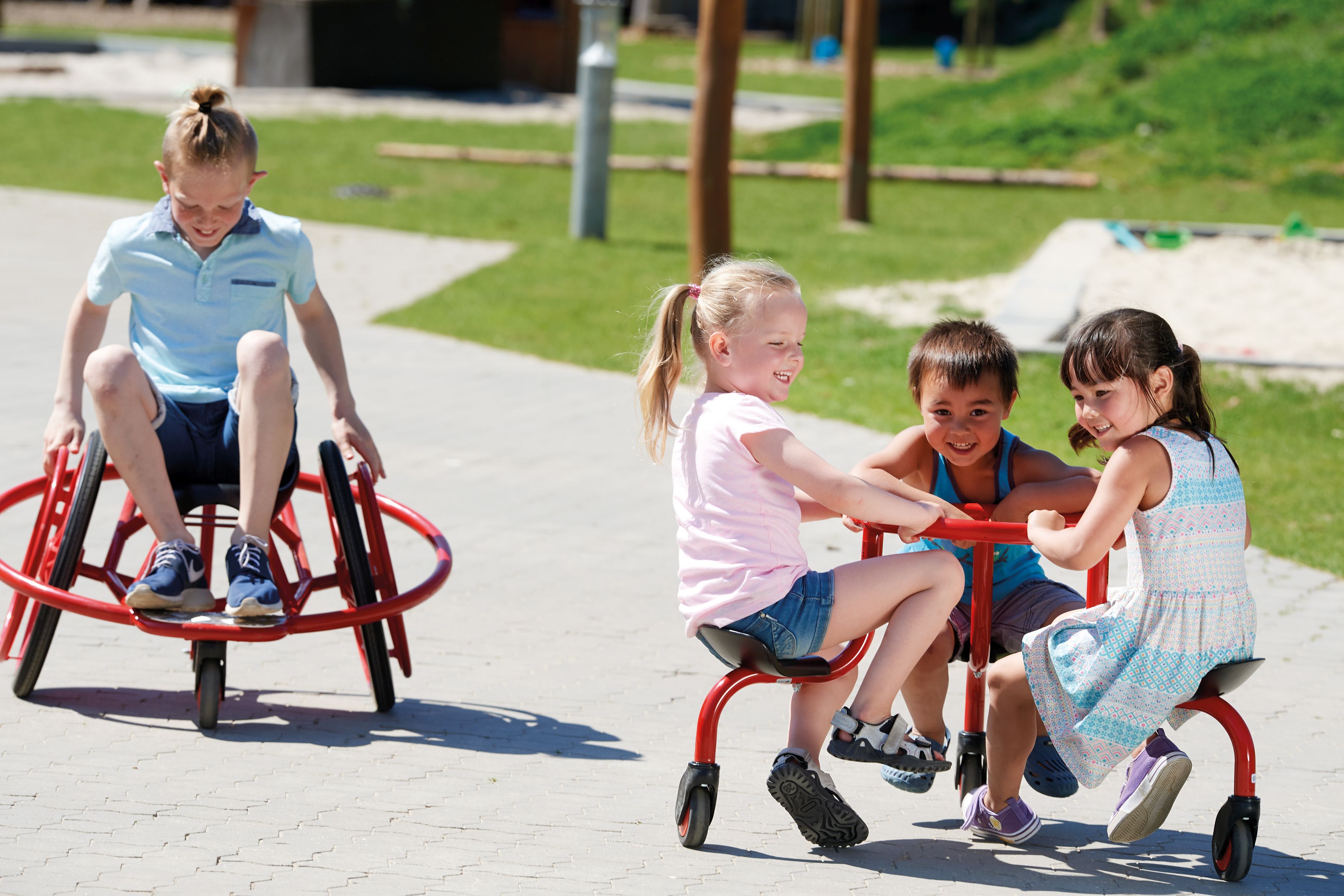 Der WheelyRider bietet Kindern auf sehr unkonventionelle Weise . . . die Möglichkeit, ihre motorischen und koordinativen Fähigkeiten zu entwickeln und zu trainieren. Vorwärts- und Rückwärtsfahren oder Drehungen stärken gleichzeitig Arm- und Brustmuskulatur. Fahren und Spielen mit dem WheelyRider machen viel Spaß und garantieren zahlreiche, spannende Spielmöglichkeiten und Herausforderungen. Zusätzlich wird das Verständnis für andere Kinder mit eingeschränkten Fähigkeiten oder Behinderungen gefördert. Schönes und sicheres Design ohne scharfe Kanten, stabil geformtes Stahlrohr garantiert maximale Stabilität. Effektiver Rostschutz und schlagfeste Pulverbeschichtung für hohe Langlebigkeit. 3 Jahr Garantie auf den Rahmen. 1 Jahr Garantie auf andere Teile. TÜV-geprüft, CE und EN 71 Für die Altersgruppe 4- 10 Jahre - Länge 89 cm, Breite 89 cm, Höhe 63,5 cm, Sitzhöhe 40 cm, Gewicht 20 kg Farbe: rot / schwarz
