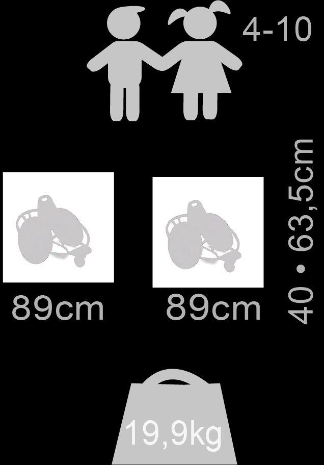 L/B/H: 60 x 60 x 91,3 cmGewicht:⦁ 6,5 kgAltersempfehlung: ab 4 Jahre