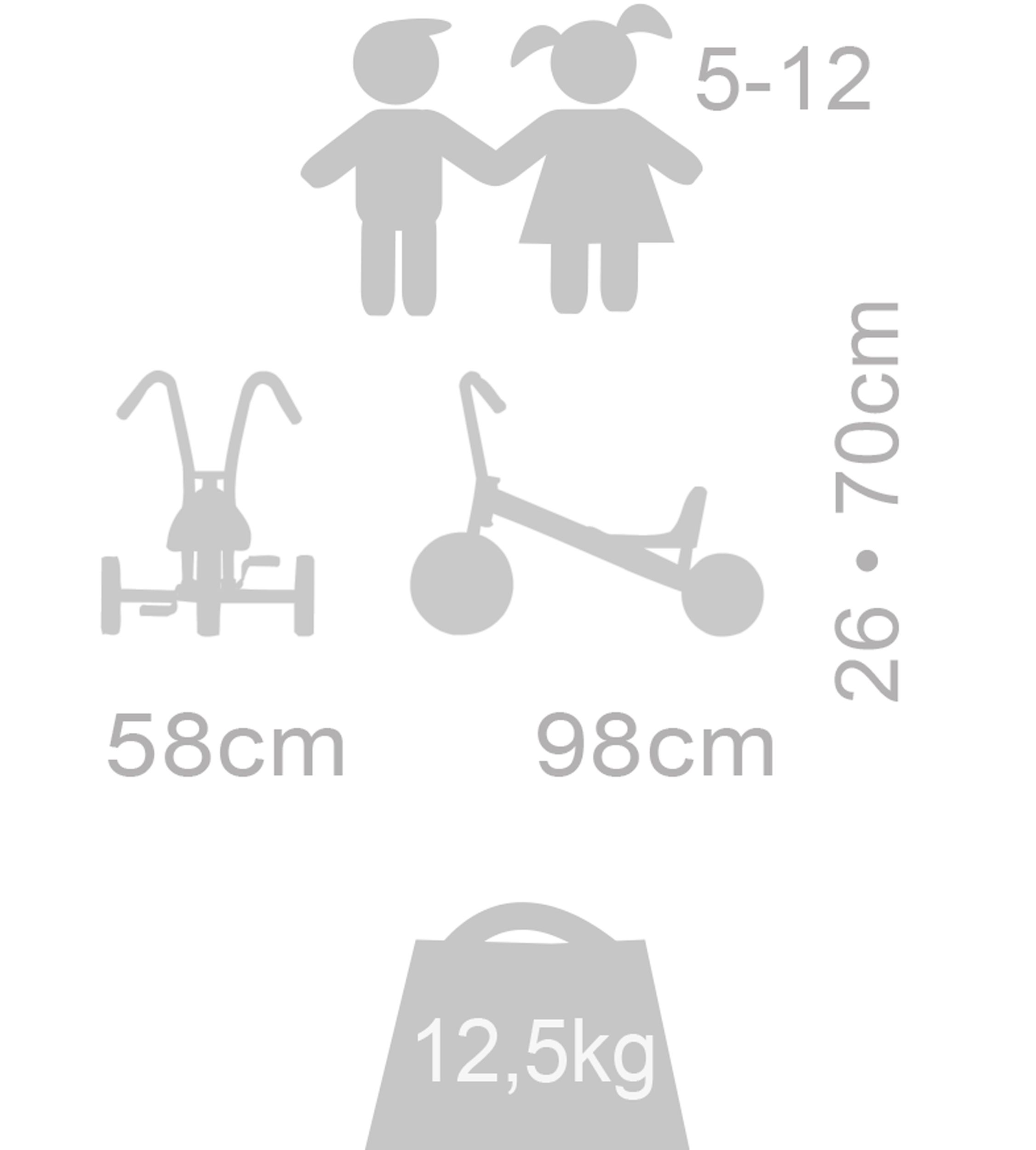 Sich einmal wie ein Römer bei einem Wagenrennen fühlen. Das Dreirad "Express" bietet Fahrspaß für zwei Kinder. Es findet sowohl ein Fahrer als auch ein Mitfahrer stehend darauf Platz. Ein Antirutschbrett und eine Brüstung sorgen für einen sicheren Stand des Mitfahrers. Dieses Fahrzeug bietet diverse Möglichkeiten des Rollenspiels.Details:⦁ Lenkeinschlag und Anschlagdämpfer für mehr Sicherheit⦁ Robuster, pulverbeschichteter Rahmen für höchste Stabilität und stoßfeste Lackierung⦁ Lange wetterfeste Kunststoffsitze-passend für verschiedene Altersgruppen⦁ Räder mit geschlossenem, dauergeschmierten Industriekugellager für leichtes Fahren⦁ Speichenlose Räder⦁ Hochwertige, massive Achse aus gehärtetem Stahl⦁ Starker Metallrahmen mit 22 mm Durchmesser⦁ Spezialpedale mit Gumminoppen verhindert ein Abrutschen der Füße⦁ Durchgeschäumte EVA-Reifen für lange Lebensdauer und leises Fahren⦁ Robuste Handgriffe mit verstärkter Kappe und Gumminoppen für soliden Halt⦁ Wissenschaftlich getestet⦁ Entwickelt mit einem Team aus führenden Pädagogen, Ingenieuren und Produktdesignern⦁ 5 Jahre Garantie auf den Rahmen⦁ 1 Jahr Garantie auf alle beweglichen Teile⦁ Umfassender Ersatzteil-Service⦁ Geprüft nach EN 71Lenkerhöhe: 64 cmSitzhöhe: 43 cmLänge: 118 cmBreite: 65Lenkerbreite: 46 cmGewicht: 12,5 kg