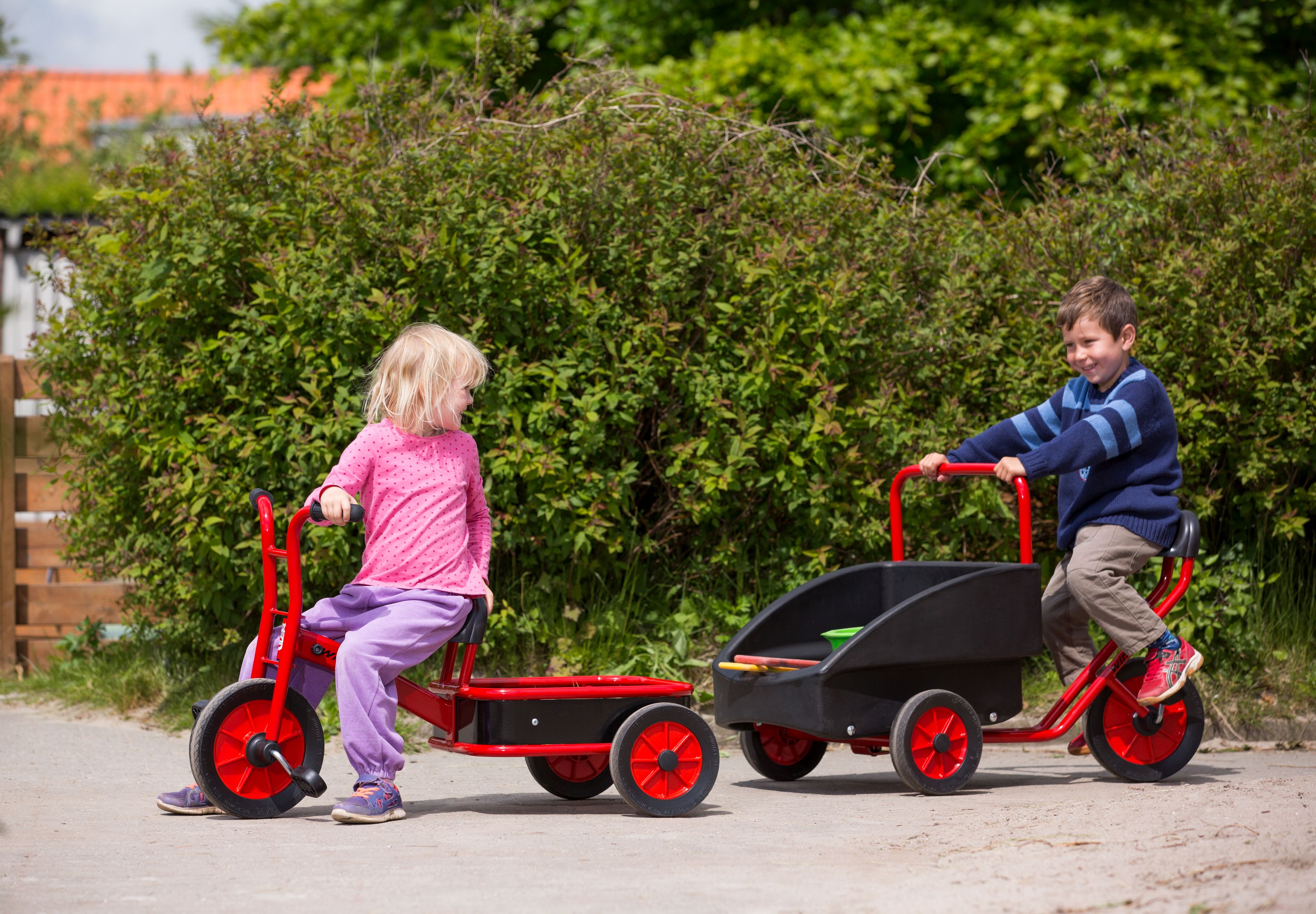 Mit dem Dreirad "Taxi" lassen sich Freunde und Freundinnen ganz bequem chauffieren. Zwei Sitze sind hintereinander angebracht und ein Antirutschbrett gibt einem dritten Passagier einen sicheren Stand. Eine Rückenlehne an den beiden Sitzen sorgt für besonderen Komfort.Details:⦁ Lenkeinschlag und Anschlagdämpfer für mehr Sicherheit⦁ Robuster, pulverbeschichteter Rahmen für höchste Stabilität und stoßfeste Lackierung⦁ Lange wetterfeste Kunststoffsitze-passend für verschiedene Altersgruppen⦁ Räder mit geschlossenem, dauergeschmierten Industriekugellager für leichtes Fahren⦁ Speichenlose Räder⦁ Hochwertige, massive Achse aus gehärtetem Stahl⦁ Starker Metallrahmen mit 22 mm Durchmesser⦁ Spezialpedale mit Gumminoppen verhindert ein Abrutschen der Füße⦁ Durchgeschäumte EVA-Reifen für lange Lebensdauer und leises Fahren⦁ Robuste Handgriffe mit verstärkter Kappe und Gumminoppen für soliden Halt⦁ Wissenschaftlich getestet⦁ Entwickelt mit einem Team aus führenden Pädagogen, Ingenieuren und Produktdesignern⦁ 5 Jahre Garantie auf den Rahmen⦁ 1 Jahr Garantie auf alle beweglichen Teile⦁ Umfassender Ersatzteil-Service⦁ Geprüft nach EN 71Lenkerhöhe: 64 cmSitzhöhe: 38 cmLänge: 112 cmBreite: 56Lenkerbreite: 46 cmGewicht: 12,5 kgAltersempfehlung: ab 3 Jahre Umfassender Ersatzteilservice