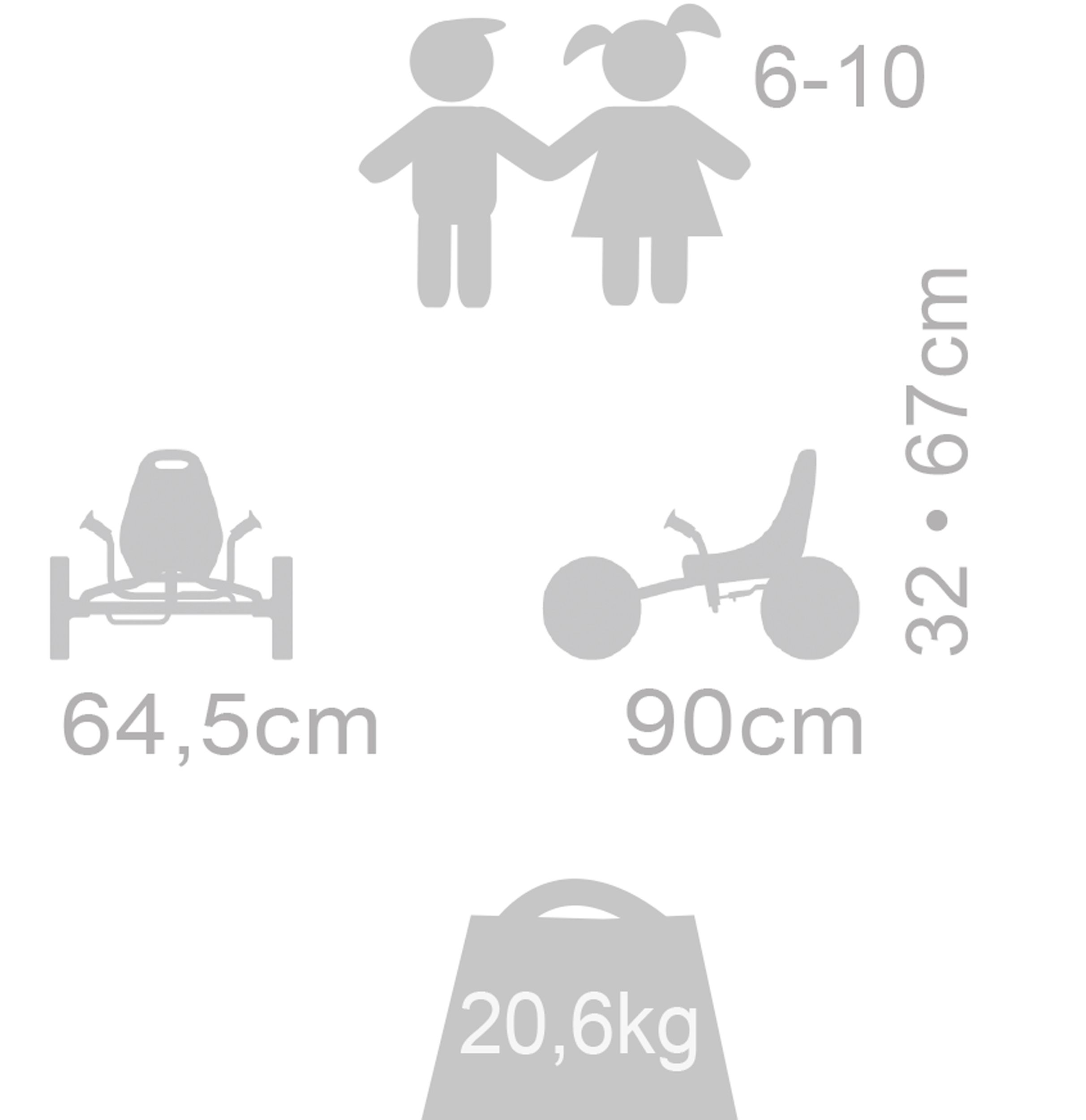 L/B/H: 60 x 60 x 91,3 cmGewicht:⦁ 6,5 kgAltersempfehlung: ab 4 Jahre