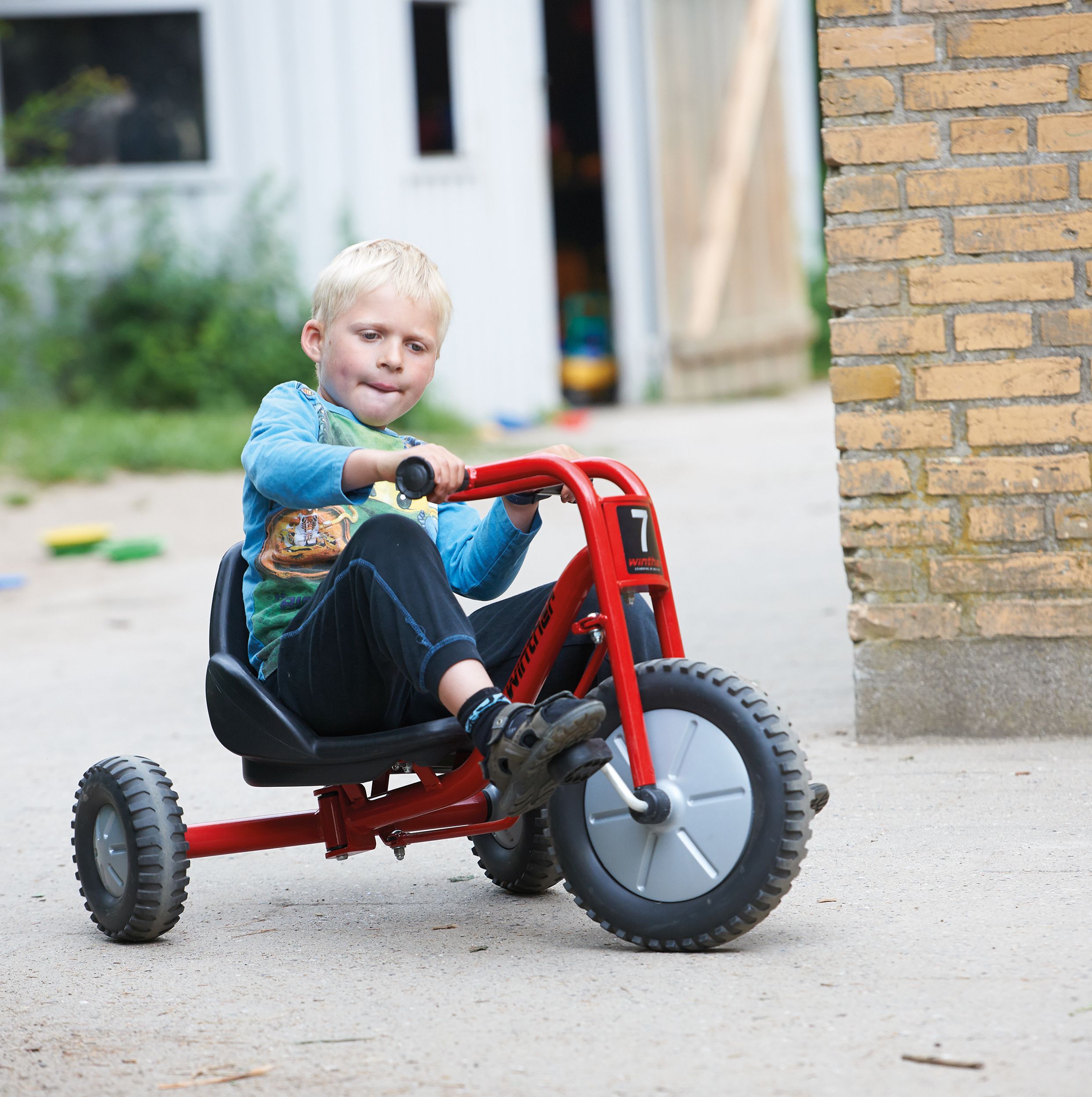 Einzigartig für alle Terrains! Dieses Trike bietet mit seinem niedrigen Sitz und der beidseitigem Lenkvorrichtung in Höhe des Sitzes einen speziellen Fahrkomfort.Details:⦁ Robuster, pulverbeschichteter Rahmen für höchste Stabilität und stoßfeste Lackierung⦁ Lange wetterfeste Kunststoffsitze-passend für verschiedene Altersgruppen⦁ Räder mit geschlossenem, dauergeschmierten Industriekugellager für leichtes Fahren⦁ Speichenlose Räder⦁ Hochwertige, massive Achse aus gehärtetem Stahl⦁ Starker Metallrahmen mit 22 mm Durchmesser⦁ Spezialpedale mit Gumminoppen verhindert ein Abrutschen der Füße⦁ Durchgeschäumte EVA-Reifen für lange Lebensdauer und leises Fahren⦁ Robuste Handgriffe mit verstärkter Kappe und Gumminoppen für soliden Halt⦁ Wissenschaftlich getestet⦁ Entwickelt mit einem Team aus führenden Pädagogen, Ingenieuren und Produktdesignern⦁ 5 Jahre Garantie auf den Rahmen⦁ 1 Jahr Garantie auf alle beweglichen Teile⦁ Umfassender Ersatzteil-Service⦁ Geprüft nach EN 71Lenkerhöhe: 34 cmSitzhöhe: 19 cmLänge: 93 cmBreite: 62Lenkerbreite: 57 cmGewicht: 14,2 kg