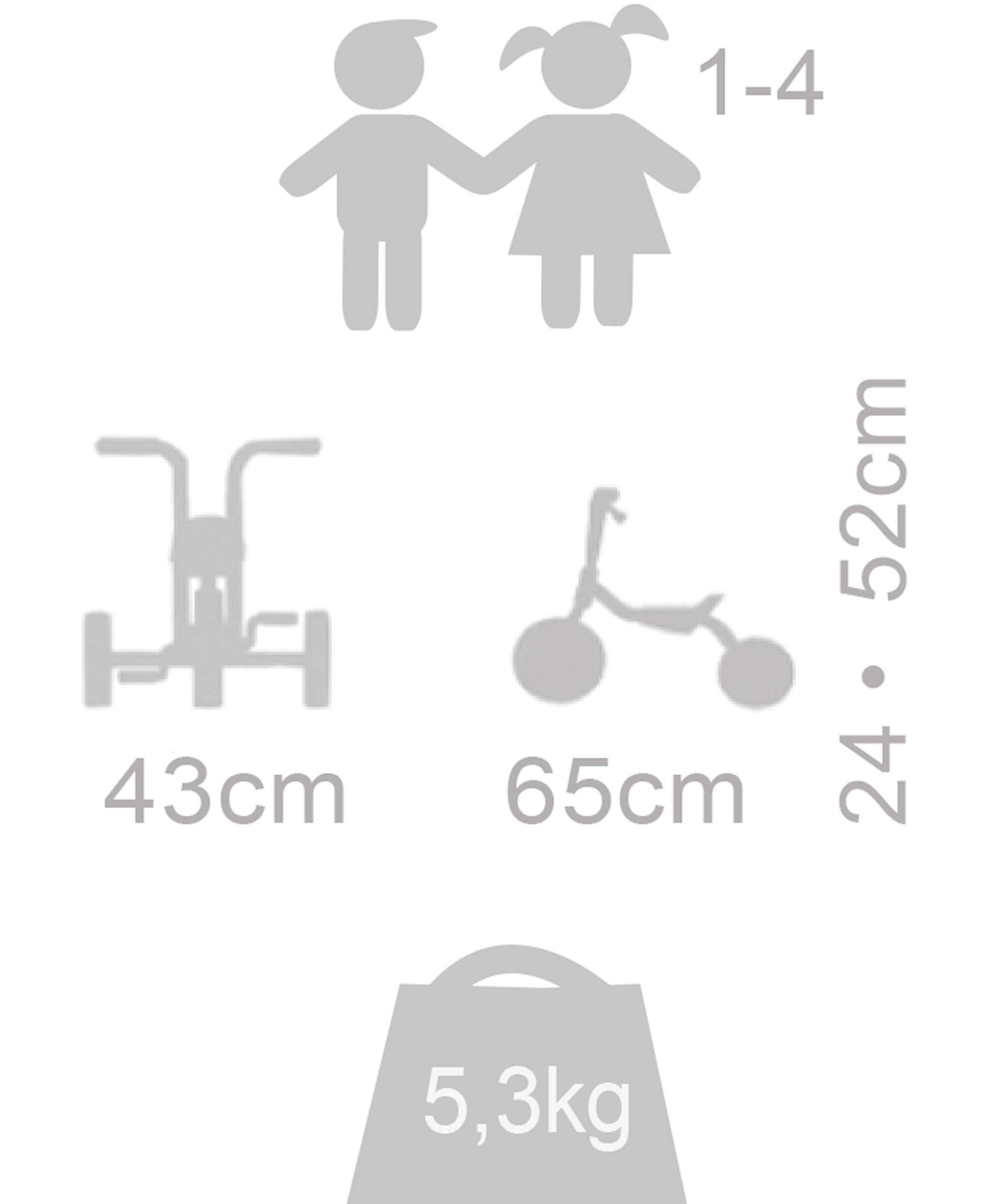 Einzigartig für alle Terrains! Dieses Trike bietet mit seinem niedrigen Sitz und der beidseitigem Lenkvorrichtung in Höhe des Sitzes einen speziellen Fahrkomfort.Details:⦁ Robuster, pulverbeschichteter Rahmen für höchste Stabilität und stoßfeste Lackierung⦁ Lange wetterfeste Kunststoffsitze-passend für verschiedene Altersgruppen⦁ Räder mit geschlossenem, dauergeschmierten Industriekugellager für leichtes Fahren⦁ Speichenlose Räder⦁ Hochwertige, massive Achse aus gehärtetem Stahl⦁ Starker Metallrahmen mit 22 mm Durchmesser⦁ Spezialpedale mit Gumminoppen verhindert ein Abrutschen der Füße⦁ Durchgeschäumte EVA-Reifen für lange Lebensdauer und leises Fahren⦁ Robuste Handgriffe mit verstärkter Kappe und Gumminoppen für soliden Halt⦁ Wissenschaftlich getestet⦁ Entwickelt mit einem Team aus führenden Pädagogen, Ingenieuren und Produktdesignern⦁ 5 Jahre Garantie auf den Rahmen⦁ 1 Jahr Garantie auf alle beweglichen Teile⦁ Umfassender Ersatzteil-Service⦁ Geprüft nach EN 71Lenkerhöhe: 34 cmSitzhöhe: 19 cmLänge: 93 cmBreite: 62Lenkerbreite: 57 cmGewicht: 14,2 kg