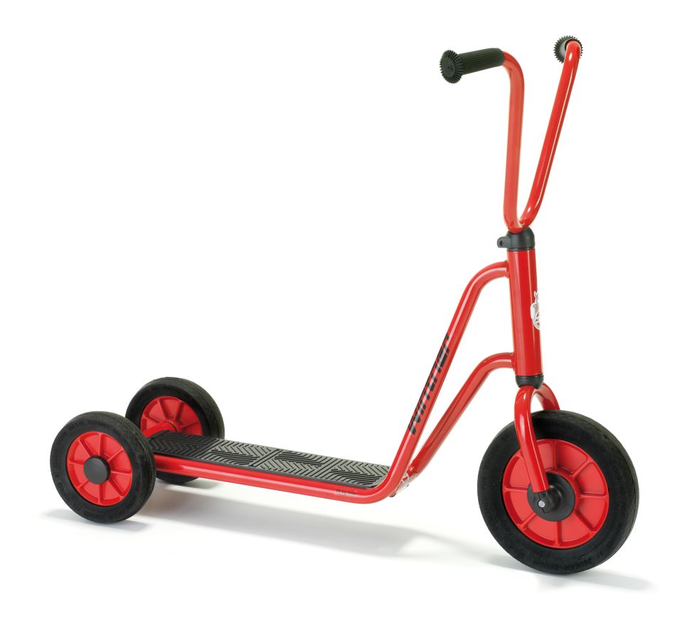 Mit den zwei Hinterrädern rollt und steht dieser Roller immer sehr stabil und sicher.