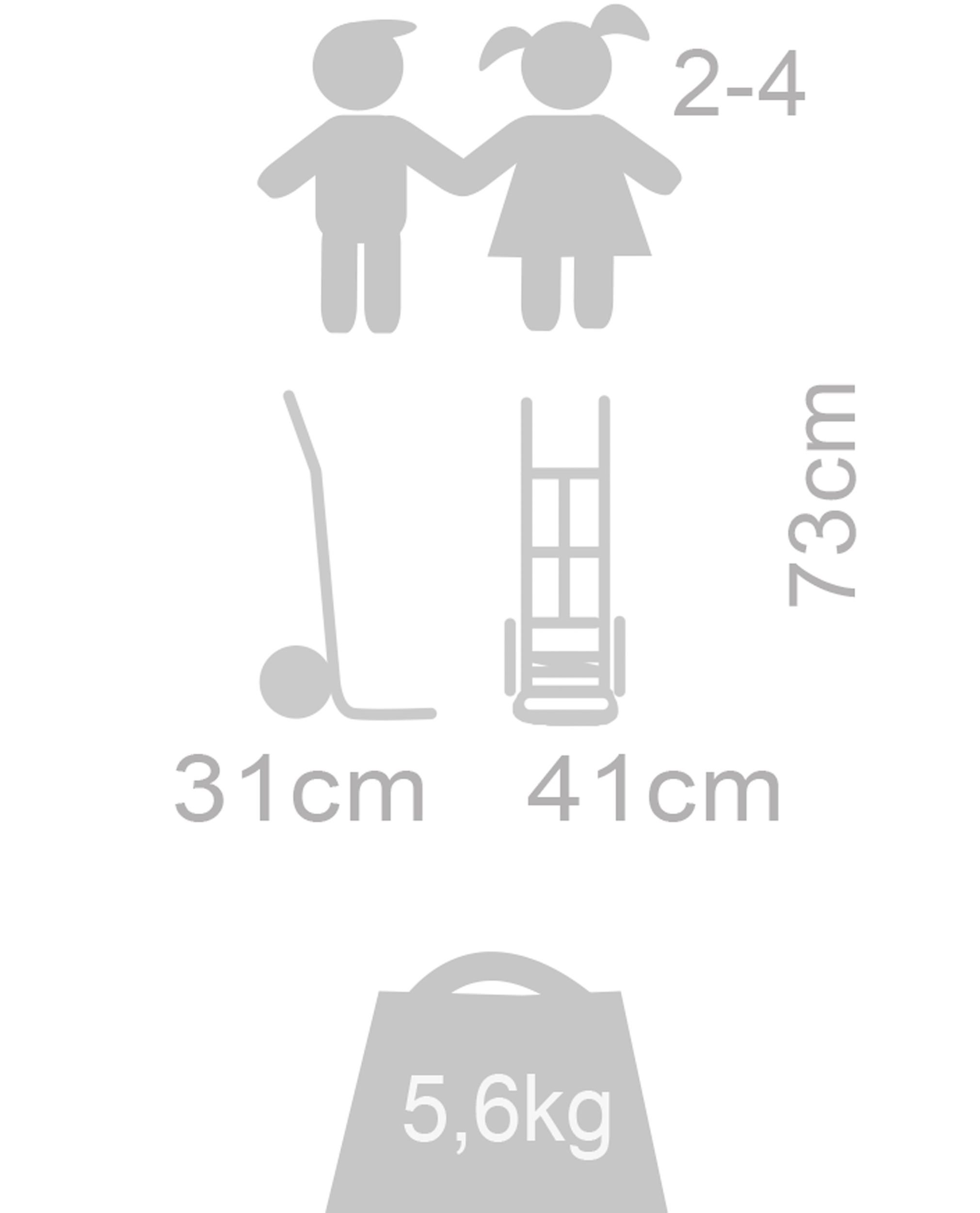 Für die Altersgruppe 2 bis 4 Jahre - Länge 31 cm, Breite 41 cm, Handgriffhöhe 73 cm,