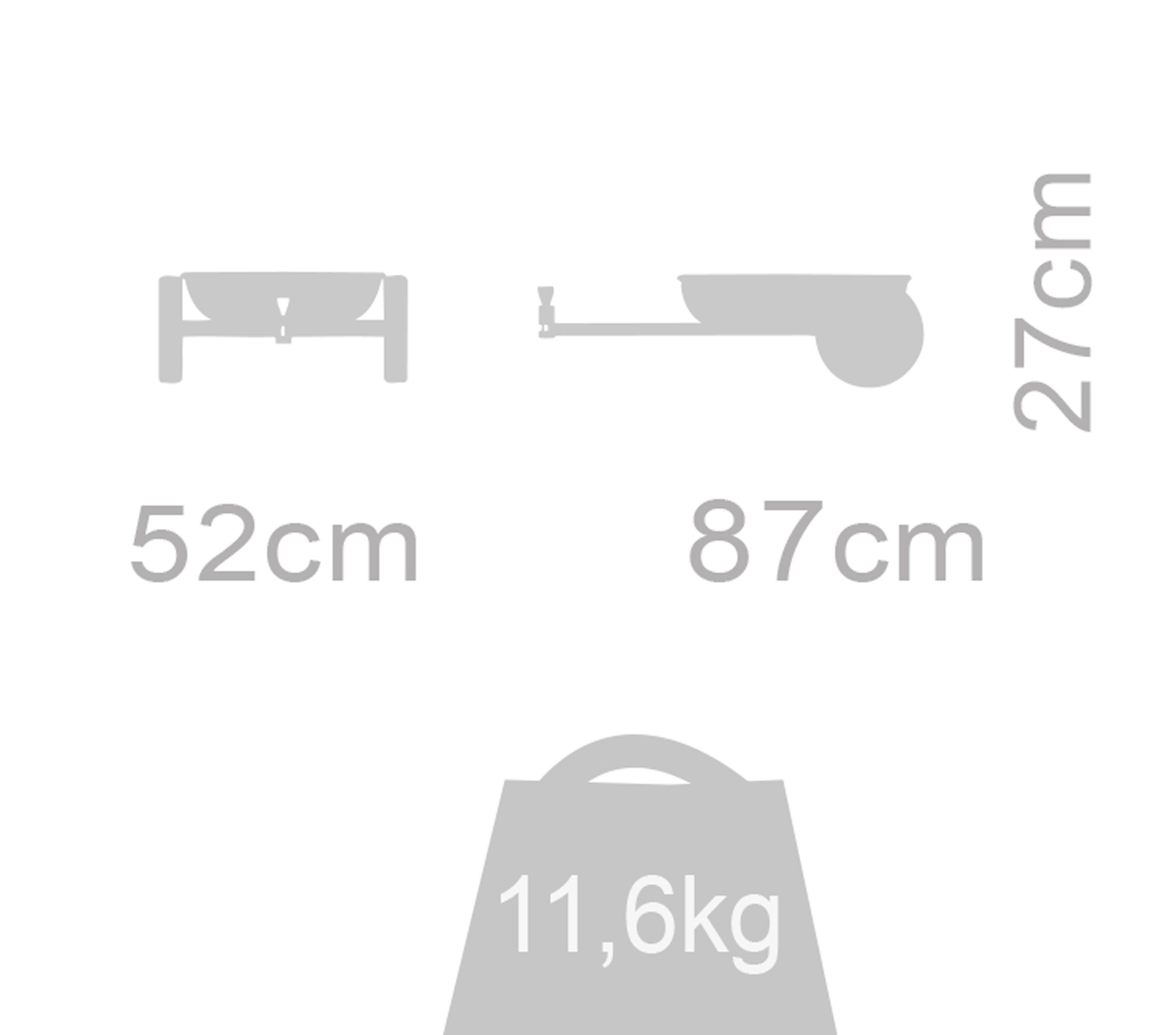 Länge 86 cm, Breite 52 cm, Höhe 25 cm