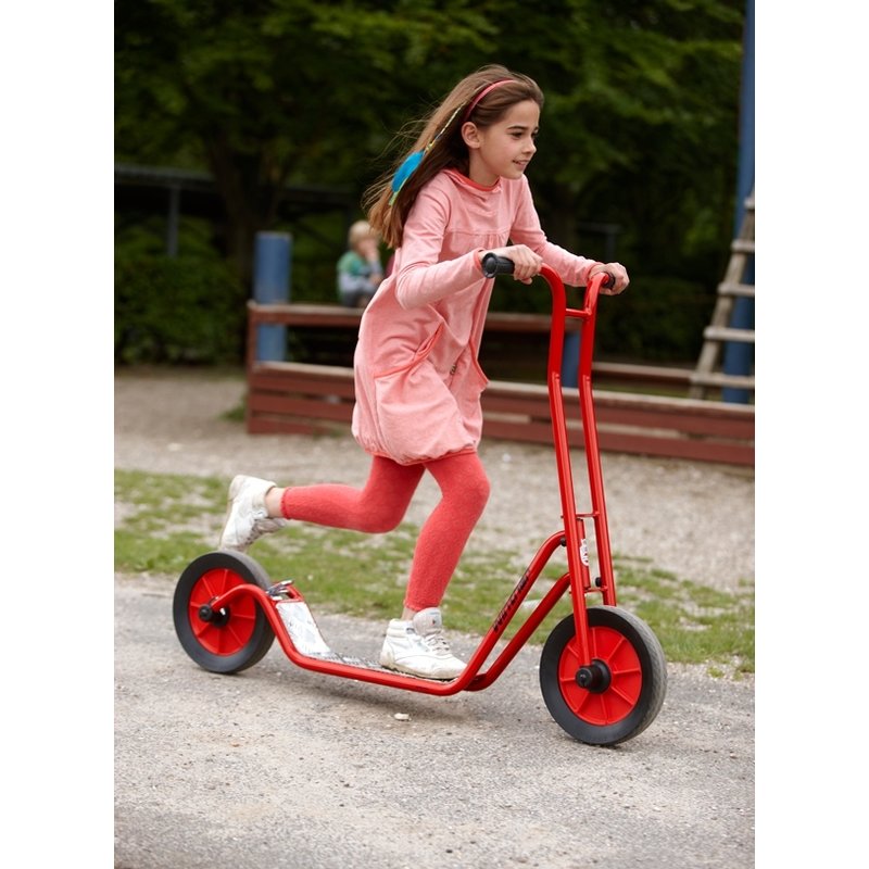 Roller mit Fußbremse und extra verstärkter Trittfläche. Speziell für größere und ältere Kinder ist dieser Roller mit extra großen 27er Rädern ein aufregendes Fahrzeug. Rollerfahren ist in jedem Alter herausfordernd und macht einfach viel Spaß! Schönes und sicheres Design ohne scharfe Kanten, stabil geformtes Stahlrohr garantiert maximale Stabilität. Geräuscharme Räder mit strapazierfähigen Gummireifen. Gummipuffer, um Verletzungen der Finger zu vermeiden. Solide Handgriffe aus Gummi. Effektiver Rostschutz und schlagfeste Pulverbeschichtung für hohe Langlebigkeit. Räder mit langlebigen Industrie-Kugellagern. Verbessertes Raddesign für die VIKING Serie seit 2021. 5 Jahr Garantie auf Rahmen und Gabel TÜV-geprüft, CE und EN 71 ⦁ ASTM F963 Für die Altersgruppe 8 bis 12 Jahre - Länge 121 cm, Breite 47 cm, Lenkerhöhe 93 cm, Gewicht 10,60 kg, Maße Trittfläche 52 x 11 cm Farbe: rot / schwarz