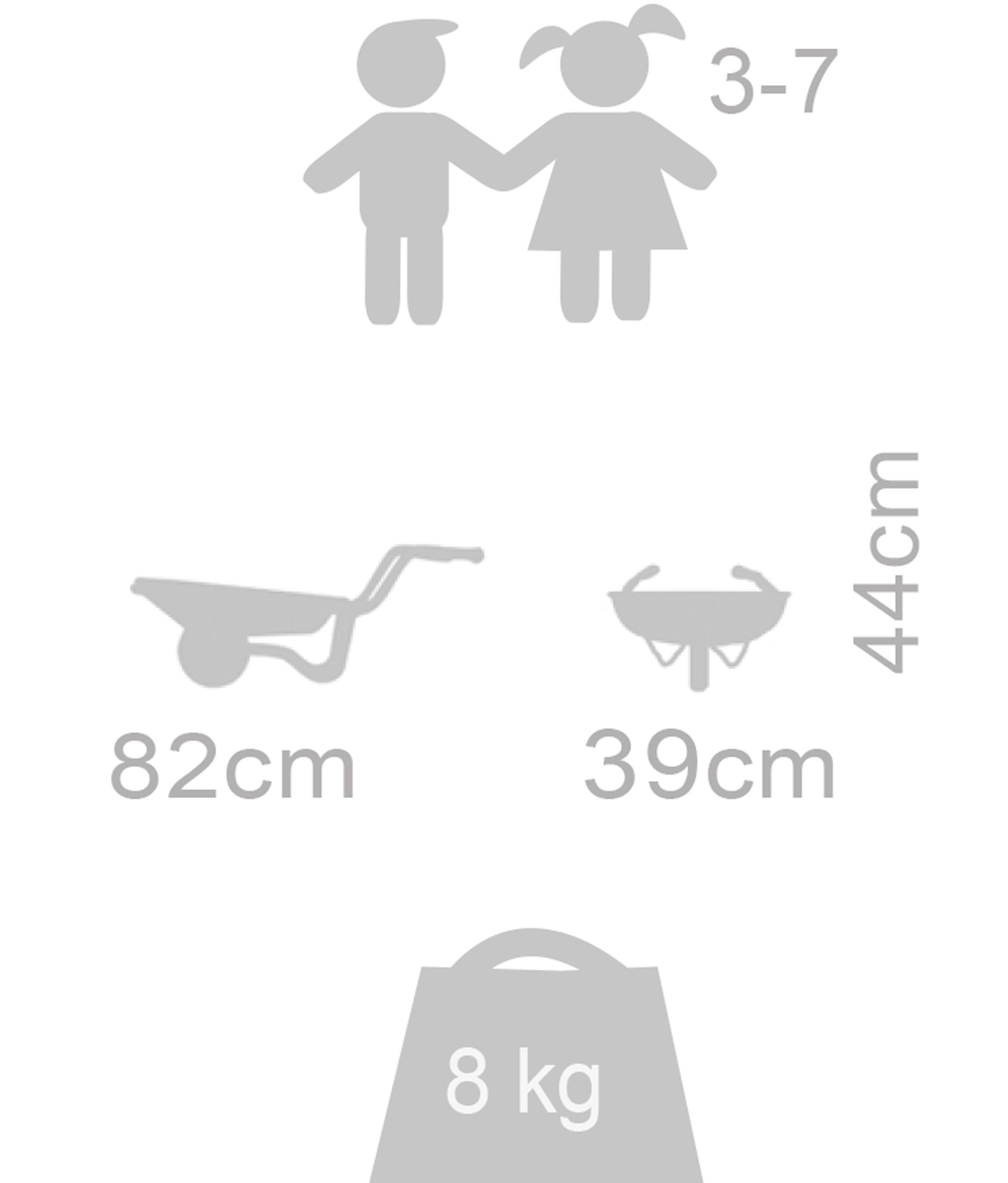 Diese robuste Einrad-Schubkarre . . . mit Industrie-Kugellager und verzinkter, extra verstärkter Wanne ist für die Bereiche Kindergarten, KITA und Schule hervorragend geeignet. Rahmen und Ständer sind ebenfalls verstärkt und schützen die Wanne vor Beschädigungen. Mit der Schubkarre so hantieren wie die Erwachsenen, das macht Spaß und trainiert den Gleichgewichtssinn der Kinder. Schönes und sicheres Design ohne scharfe Kanten, stabil geformtes Stahlrohr garantiert maximale Stabilität. Geräuscharmes Rad mit strapazierfähigen Gummireifen. Effektiver Rostschutz und schlagfeste Pulverbeschichtung für hohe Langlebigkeit 5 Jahr Garantie auf Rahmen und Gabel. 1 Jahr Garantie auf andere Teile. TÜV-geprüft, CE und EN 71 ⦁ ASTM F963 Für die Altersgruppe 3 bis 7 Jahre - Länge 82 cm, Breite 39 cm, Höhe 44 cm, Gewicht 7,80 kg Farbe: rot / schwarz / silber