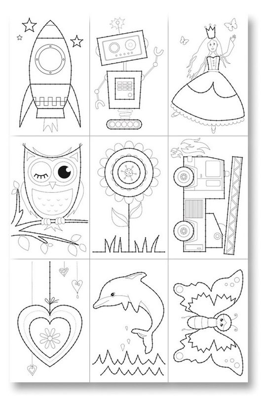 Eine wertvolle Geschenkidee bieten die 48 weißen Ausnähkarten. Durch die vorgestanzten Löcher am Rande der 8 Motive buntes Stickgarn oder Fäden mit einer Sticknadel einziehen und danach die Karten ausmalen. Die Karten sind durch ihre Größe sehr gut für die ersten Ausnähversuche geeignet und fördern die Augen-Hand-Koordination.