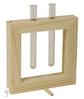 Inhalt: 1 Dekoständer – 1 Holzhalterung, 2 Reagenzgläser (Kunststoff), 4 Verbindungsteile, 1 Holzstift