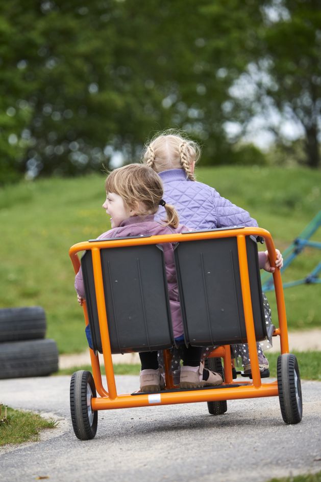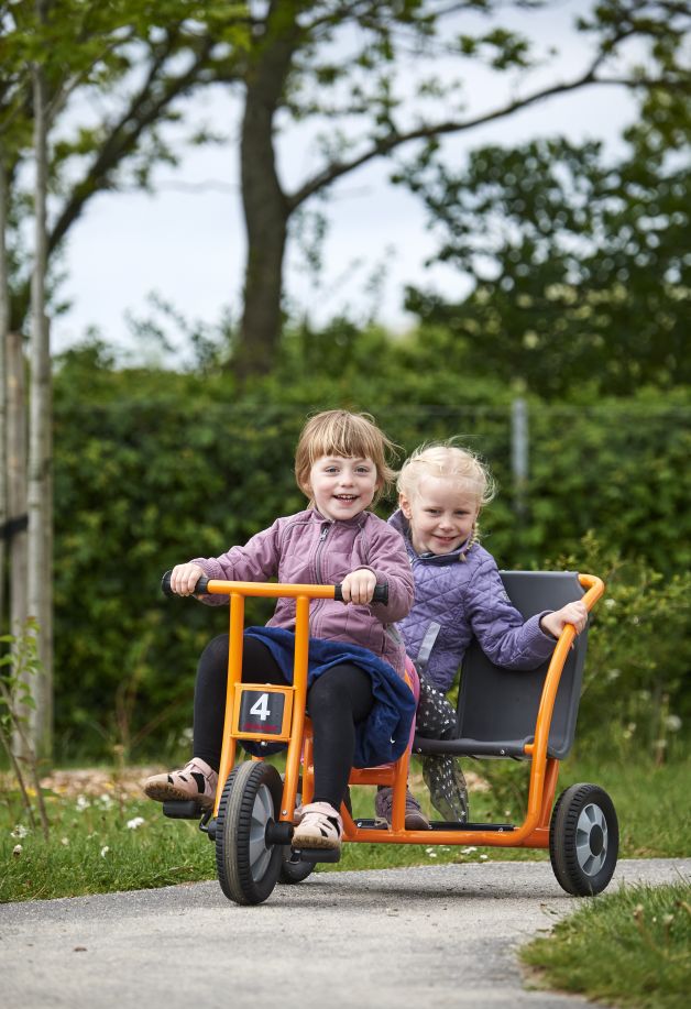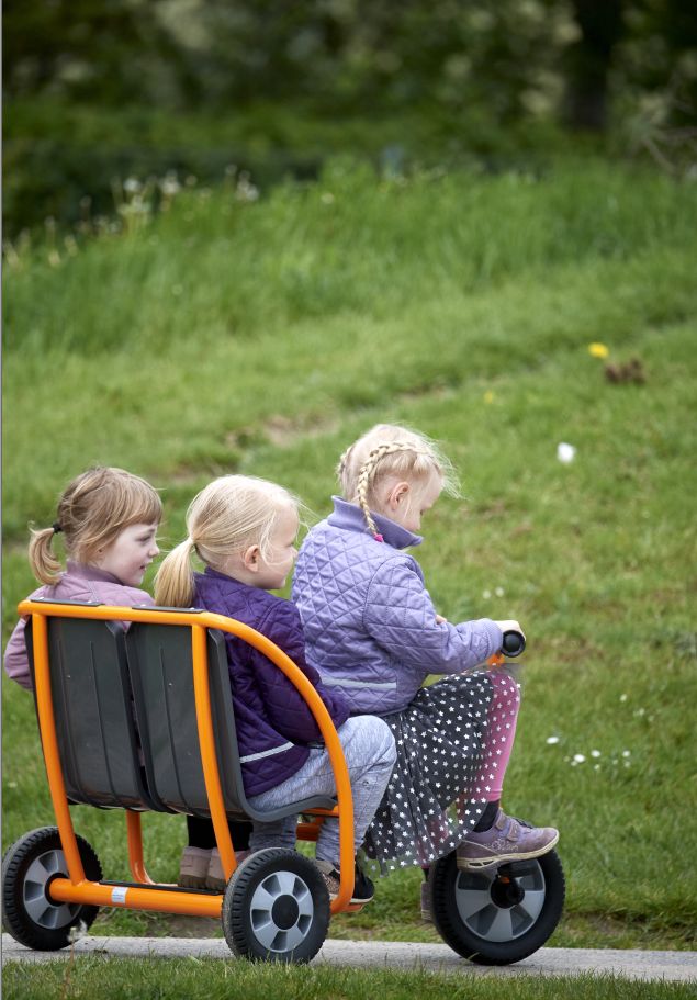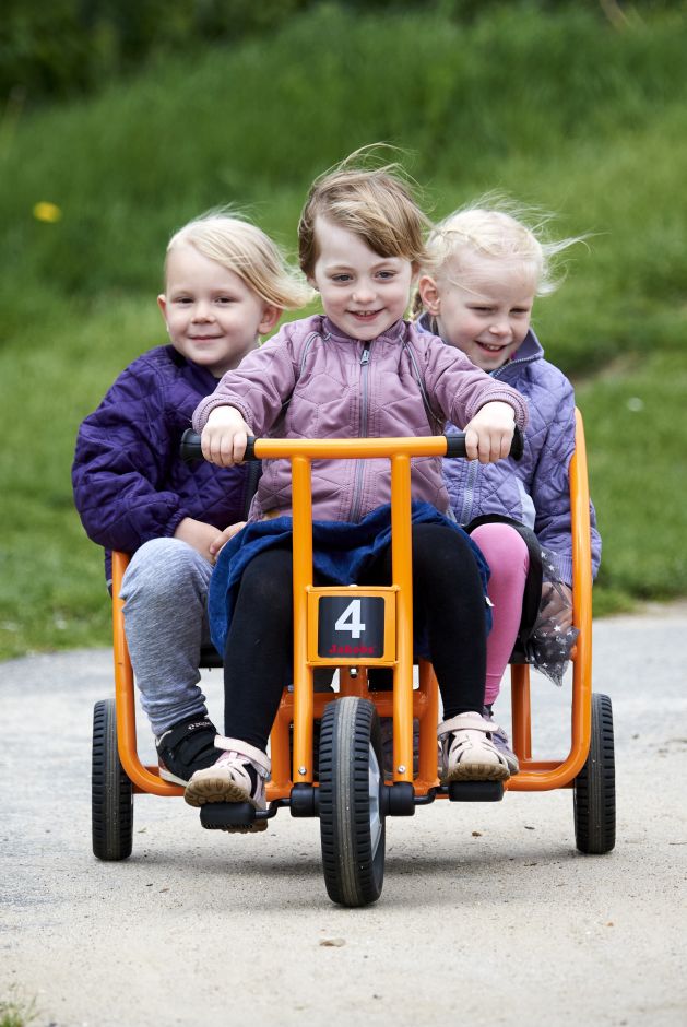 Mit dem Dreirad "Taxi" lassen sich Freunde und Freundinnen ganz bequem chauffieren. Zwei Sitze sind hintereinander angebracht und ein Antirutschbrett gibt einem dritten Passagier einen sicheren Stand. Eine Rückenlehne an den beiden Sitzen sorgt für besonderen Komfort.Details:⦁ Lenkeinschlag und Anschlagdämpfer für mehr Sicherheit⦁ Robuster, pulverbeschichteter Rahmen für höchste Stabilität und stoßfeste Lackierung⦁ Lange wetterfeste Kunststoffsitze-passend für verschiedene Altersgruppen⦁ Räder mit geschlossenem, dauergeschmierten Industriekugellager für leichtes Fahren⦁ Speichenlose Räder⦁ Hochwertige, massive Achse aus gehärtetem Stahl⦁ Starker Metallrahmen mit 22 mm Durchmesser⦁ Spezialpedale mit Gumminoppen verhindert ein Abrutschen der Füße⦁ Durchgeschäumte EVA-Reifen für lange Lebensdauer und leises Fahren⦁ Robuste Handgriffe mit verstärkter Kappe und Gumminoppen für soliden Halt⦁ Wissenschaftlich getestet⦁ Entwickelt mit einem Team aus führenden Pädagogen, Ingenieuren und Produktdesignern⦁ 5 Jahre Garantie auf den Rahmen⦁ 1 Jahr Garantie auf alle beweglichen Teile⦁ Umfassender Ersatzteil-Service⦁ Geprüft nach EN 71Lenkerhöhe: 64 cmSitzhöhe: 38 cmLänge: 112 cmBreite: 56Lenkerbreite: 46 cmGewicht: 12,5 kgAltersempfehlung: ab 3 Jahre Umfassender Ersatzteilservice