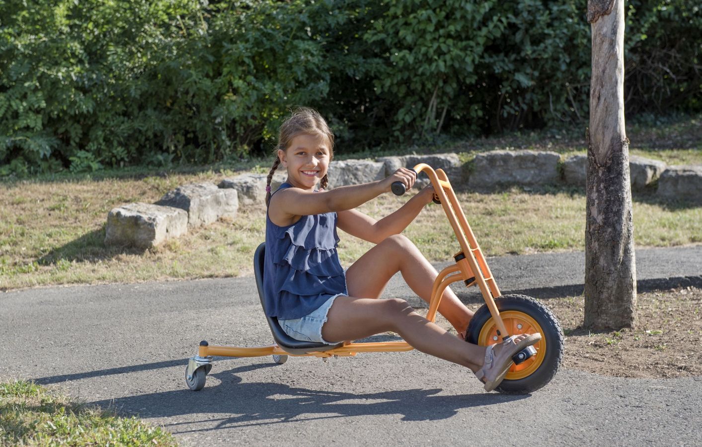 Entspannt cruisen! Dieses tolle Gefährt bietet ein besonderes Fahrgefühl dank seines tiefen Sitzes mit Lehne und der hohen Lenkvorrichtung. Der Sitz lässt sich je nach Kindergröße passend verstellen.Details:⦁ Verstellbarer Sitz⦁ Lenkeinschlag und Anschlagdämpfer für mehr Sicherheit⦁ Robuster, pulverbeschichteter Rahmen für höchste Stabilität und stoßfeste Lackierung⦁ Lange wetterfeste Kunststoffsitze-passend für verschiedene Altersgruppen⦁ Räder mit geschlossenem, dauergeschmierten Industriekugellager für leichtes Fahren⦁ Speichenlose Räder⦁ Hochwertige, massive Achse aus gehärtetem Stahl⦁ Starker Metallrahmen mit 22 mm Durchmesser⦁ Spezialpedale mit Gumminoppen verhindert ein Abrutschen der Füße⦁ Durchgeschäumte EVA-Reifen für lange Lebensdauer und leises Fahren⦁ Robuste Handgriffe mit verstärkter Kappe und Gumminoppen für soliden Halt⦁ Wissenschaftlich getestet⦁ Entwickelt mit einem Team aus führenden Pädagogen, Ingenieuren und Produktdesignern⦁ 5 Jahre Garantie auf den Rahmen⦁ 1 Jahr Garantie auf alle beweglichen Teile⦁ Umfassender Ersatzteil-Service⦁ Geprüft nach EN 71Lenkerhöhe: 66 cmSitzhöhe: 17 cmLänge: 96 cmBreite: 59Lenkerbreite: 48 cmGewicht: 11,0 kgAltersempfehlung: ab 4 Jahre Umfassender Ersatzteilservice