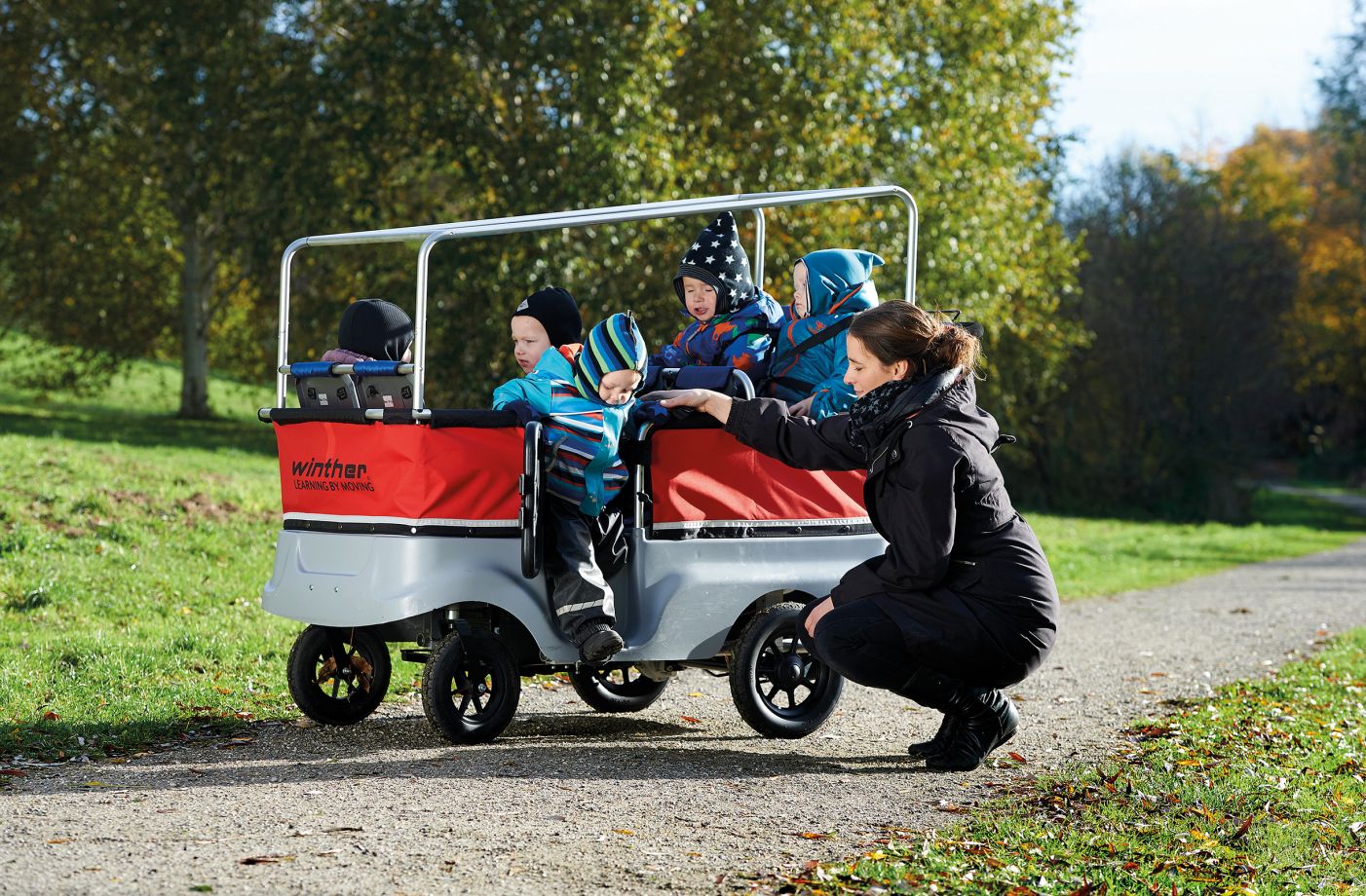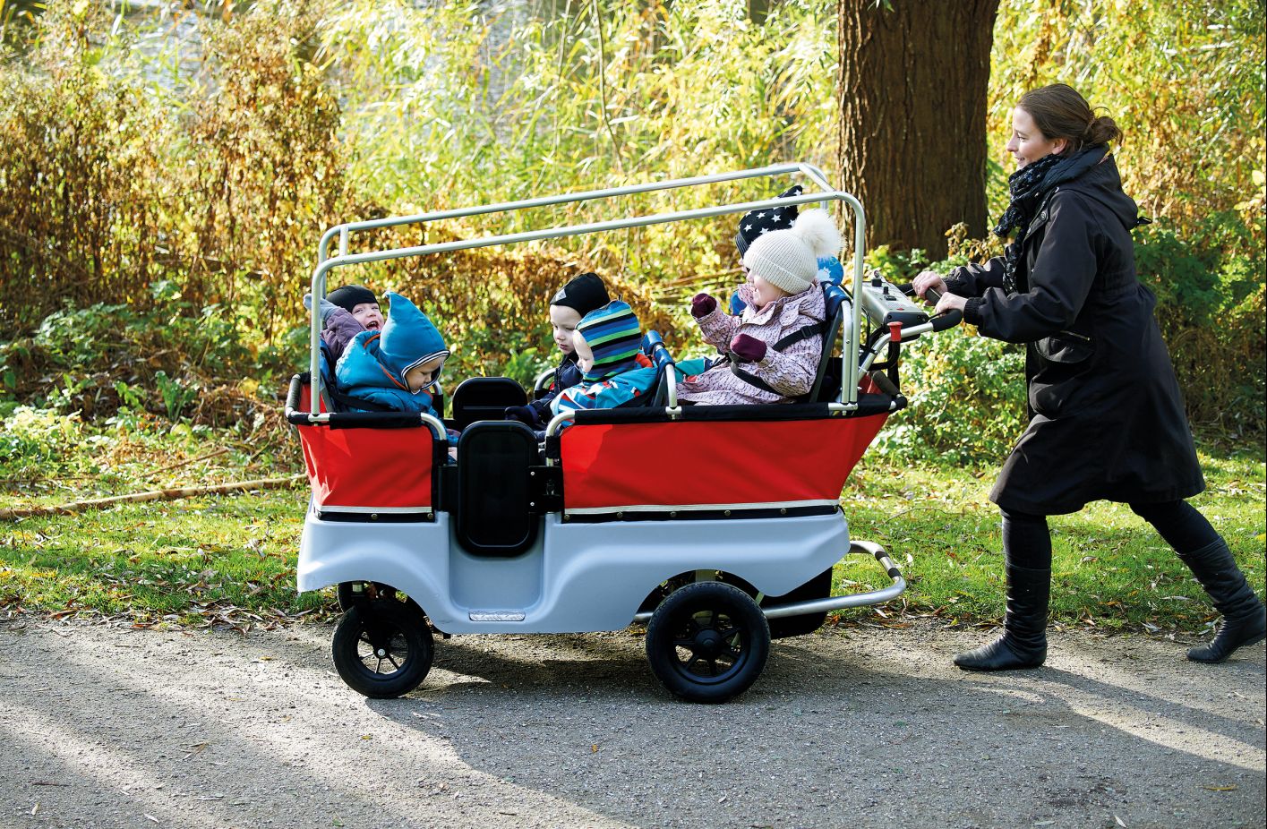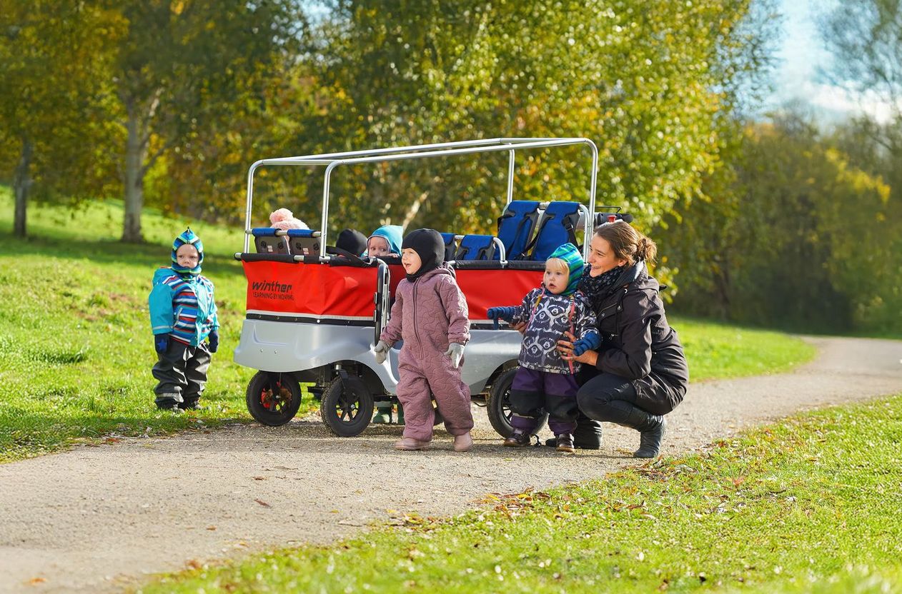 Der Kinderbus bremst automatisch, wenn Handgriff und