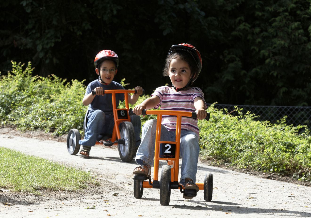 Wer wird zuerst auf dem Spielplatz sein und dieses großartige Dreirad erobern –