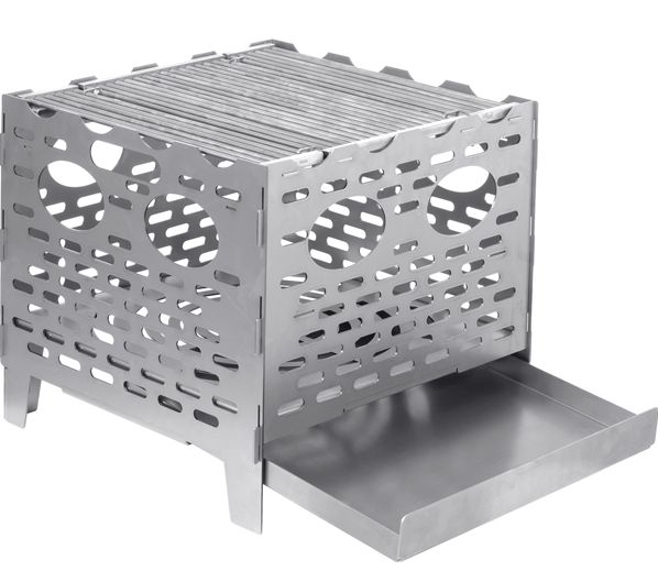 hochklappbar. Durch Schlitze ringsum bekommt das Feuer immer