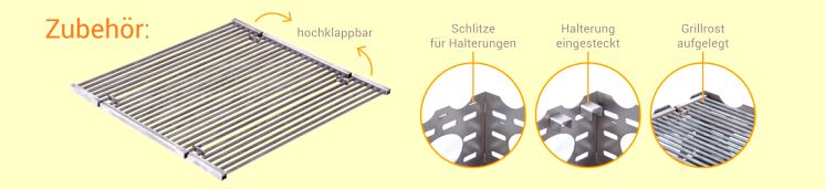 Der Grillrost (Zubehör) ist hierfür seitlich
