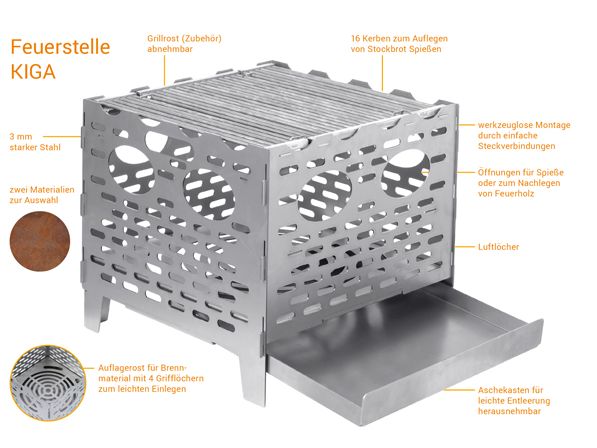 Produktinformationen "Feuerstelle KIGA aus korrodierendem Stahl, inkl. Stockbrot-Fiebel"