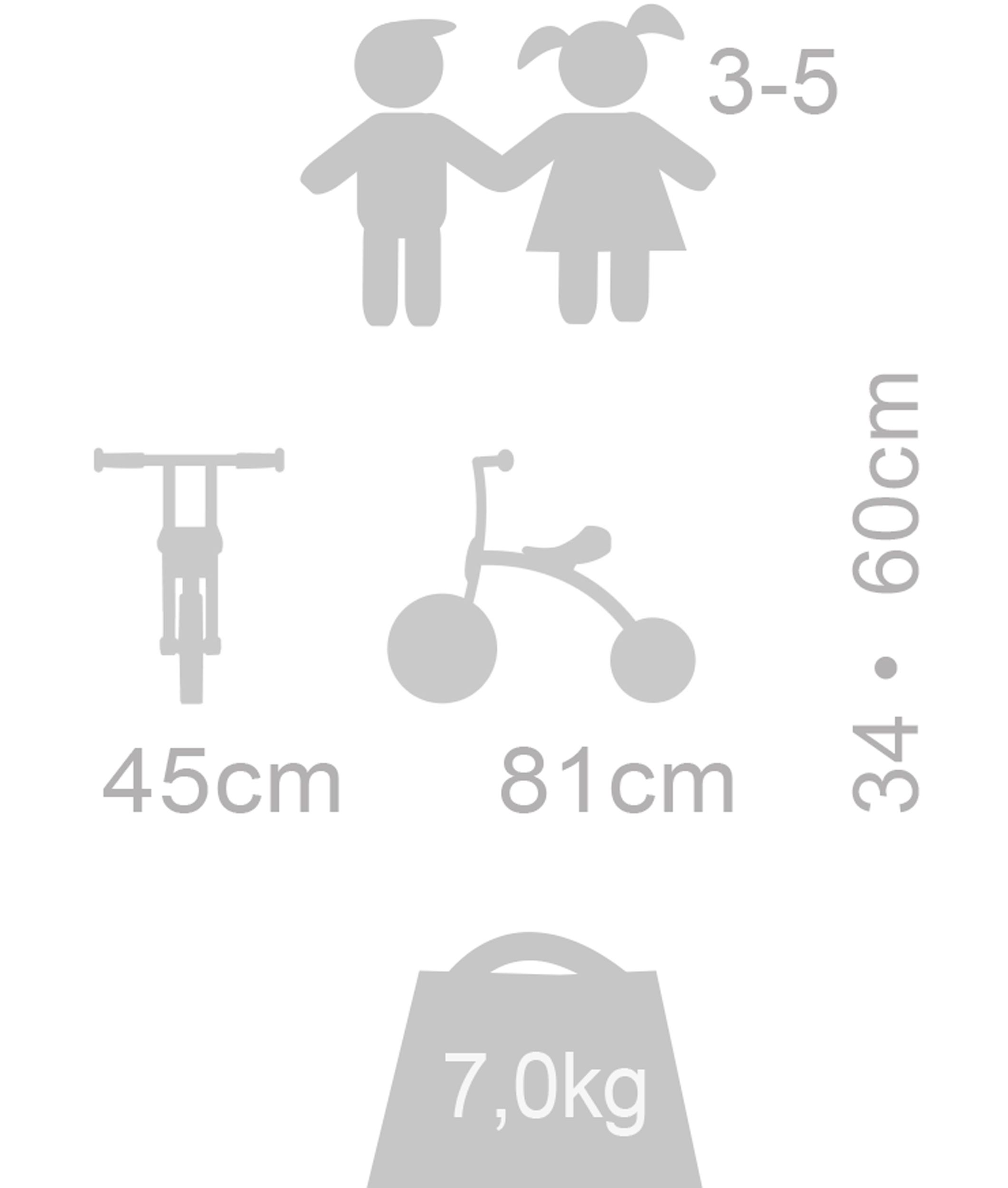 L/B/H: 60 x 60 x 91,3 cmGewicht:⦁ 6,5 kgAltersempfehlung: ab 4 Jahre