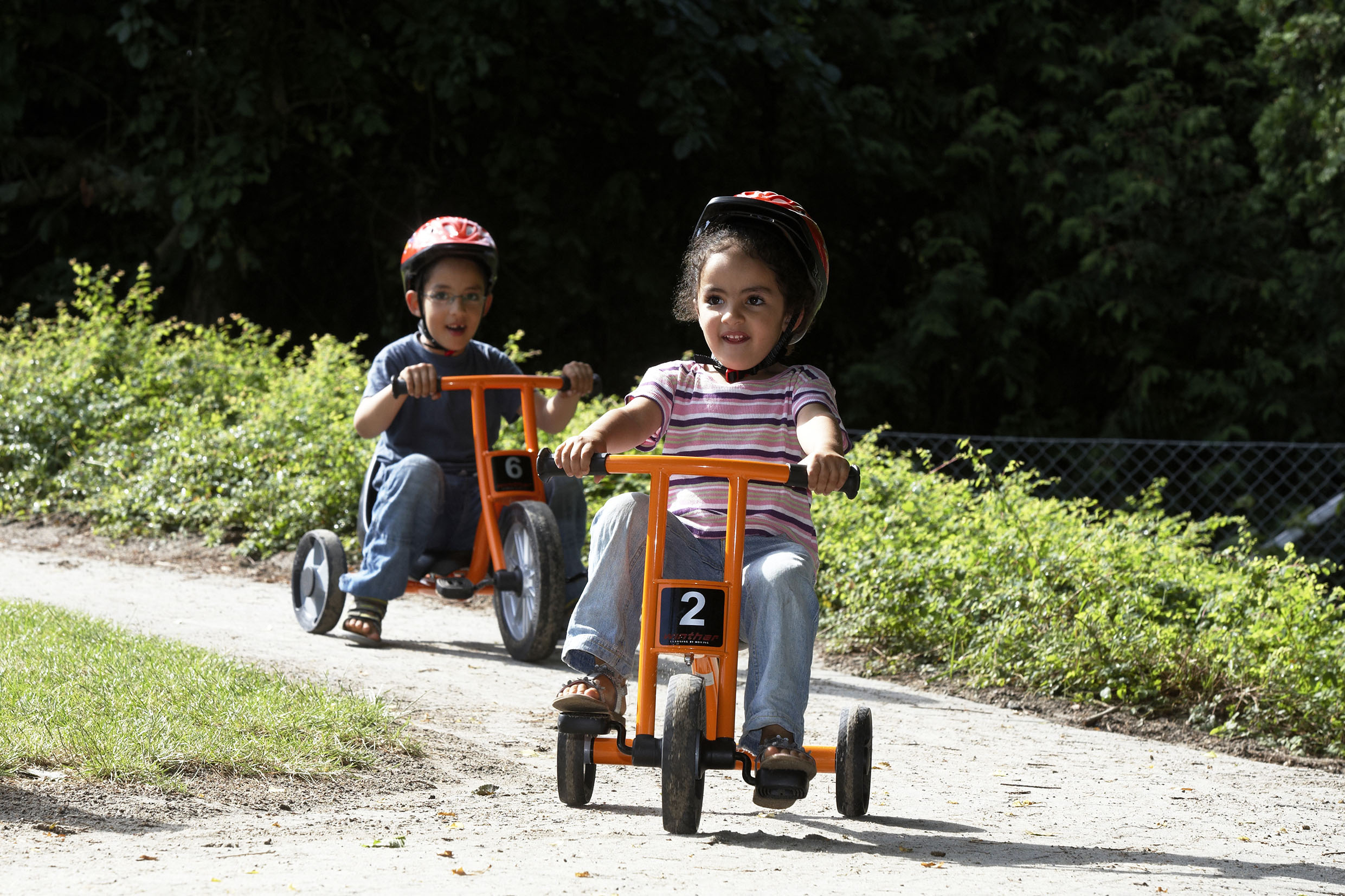 Sich einmal wie ein Römer bei einem Wagenrennen fühlen. Das Dreirad "Express" bietet Fahrspaß für zwei Kinder. Es findet sowohl ein Fahrer als auch ein Mitfahrer stehend darauf Platz. Ein Antirutschbrett und eine Brüstung sorgen für einen sicheren Stand des Mitfahrers. Dieses Fahrzeug bietet diverse Möglichkeiten des Rollenspiels.Details:⦁ Lenkeinschlag und Anschlagdämpfer für mehr Sicherheit⦁ Robuster, pulverbeschichteter Rahmen für höchste Stabilität und stoßfeste Lackierung⦁ Lange wetterfeste Kunststoffsitze-passend für verschiedene Altersgruppen⦁ Räder mit geschlossenem, dauergeschmierten Industriekugellager für leichtes Fahren⦁ Speichenlose Räder⦁ Hochwertige, massive Achse aus gehärtetem Stahl⦁ Starker Metallrahmen mit 22 mm Durchmesser⦁ Spezialpedale mit Gumminoppen verhindert ein Abrutschen der Füße⦁ Durchgeschäumte EVA-Reifen für lange Lebensdauer und leises Fahren⦁ Robuste Handgriffe mit verstärkter Kappe und Gumminoppen für soliden Halt⦁ Wissenschaftlich getestet⦁ Entwickelt mit einem Team aus führenden Pädagogen, Ingenieuren und Produktdesignern⦁ 5 Jahre Garantie auf den Rahmen⦁ 1 Jahr Garantie auf alle beweglichen Teile⦁ Umfassender Ersatzteil-Service⦁ Geprüft nach EN 71Lenkerhöhe: 64 cmSitzhöhe: 43 cmLänge: 118 cmBreite: 65Lenkerbreite: 46 cmGewicht: 12,5 kg