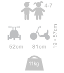 Seite an Seite mit dem Dreirad genießen! Das Dreirad "Seitenwagen" eignet sich für zwei Kinder. Der Mitfahrer kann zudem die Aussicht nach vorn genießen.Details:⦁ Lenkeinschlag und Anschlagdämpfer für mehr Sicherheit⦁ Robuster, pulverbeschichteter Rahmen für höchste Stabilität und stoßfeste Lackierung⦁ Lange wetterfeste Kunststoffsitze-passend für verschiedene Altersgruppen⦁ Seitenwagen mit Sitzschale ⦁ Räder mit geschlossenem, dauergeschmierten Industriekugellager für leichtes Fahren⦁ Speichenlose Räder⦁ Hochwertige, massive Achse aus gehärtetem Stahl⦁ Starker Metallrahmen mit 22 mm Durchmesser⦁ Spezialpedale mit Gumminoppen verhindert ein Abrutschen der Füße⦁ Durchgeschäumte EVA-Reifen für lange Lebensdauer und leises Fahren⦁ Robuste Handgriffe mit verstärkter Kappe und Gumminoppen für soliden Halt⦁ Wissenschaftlich getestet⦁ Entwickelt mit einem Team aus führenden Pädagogen, Ingenieuren und Produktdesignern⦁ 5 Jahre Garantie auf den Rahmen⦁ 1 Jahr Garantie auf alle beweglichen Teile⦁ Umfassender Ersatzteil-Service⦁ Geprüft nach EN 71Lenkerhöhe: 64 cmSitzhöhe: 43 cmLänge: 91 cmBreite: 80Lenkerbreite: 46 cmGewicht: 15,0 kg