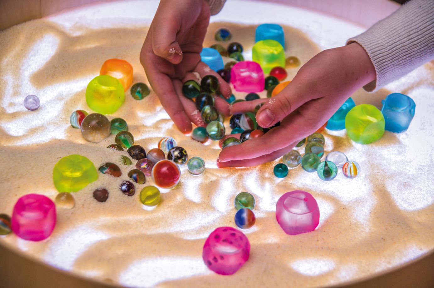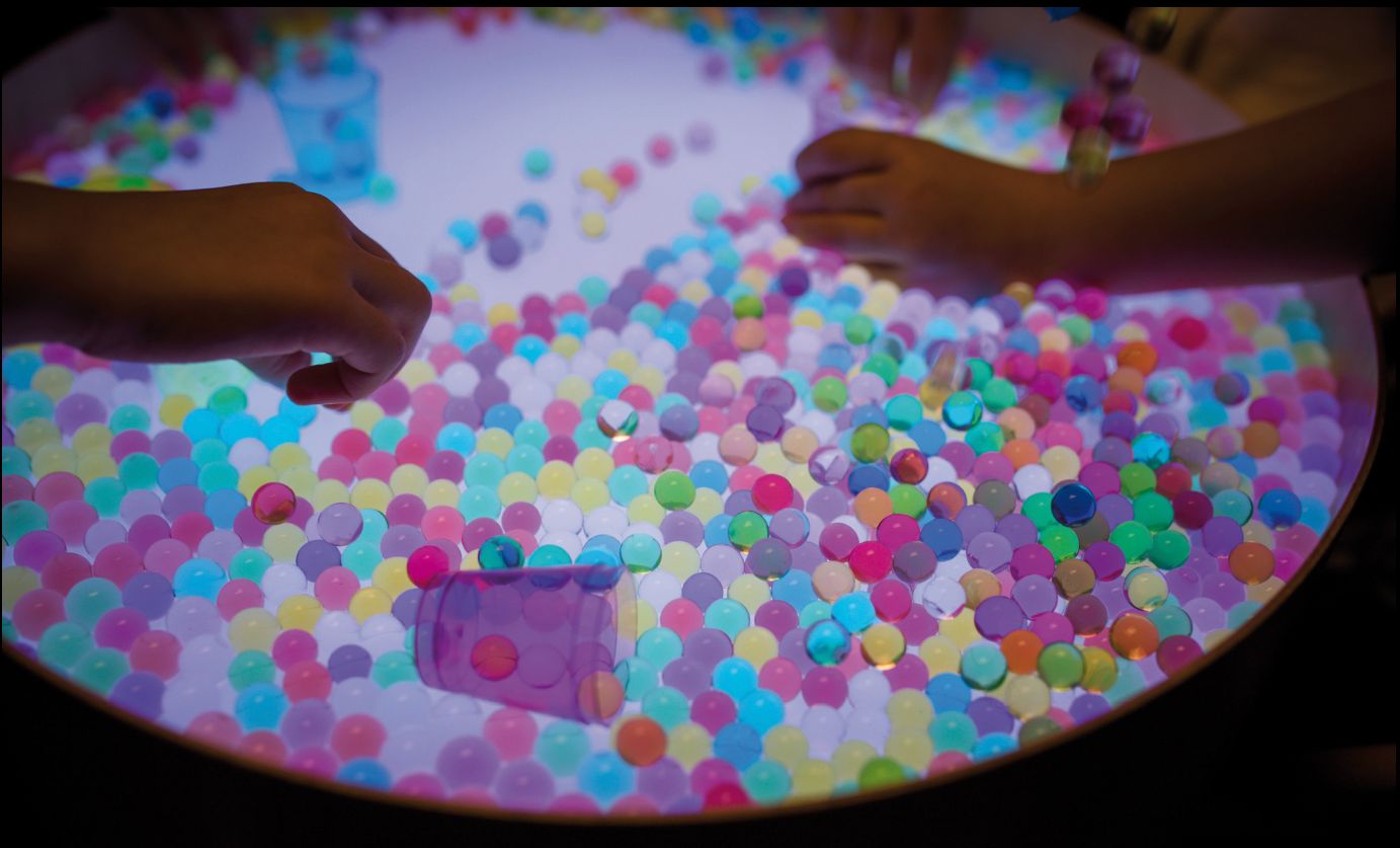 beschäftigen: Durch das Auflegen verschiedenster Formen und transluzenter Spielmaterialien