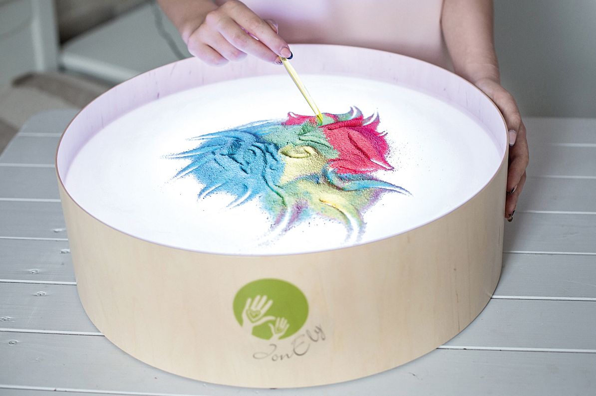 Zudem fördert das Sandmalen mit Fingern, Pinseln und Spachteln