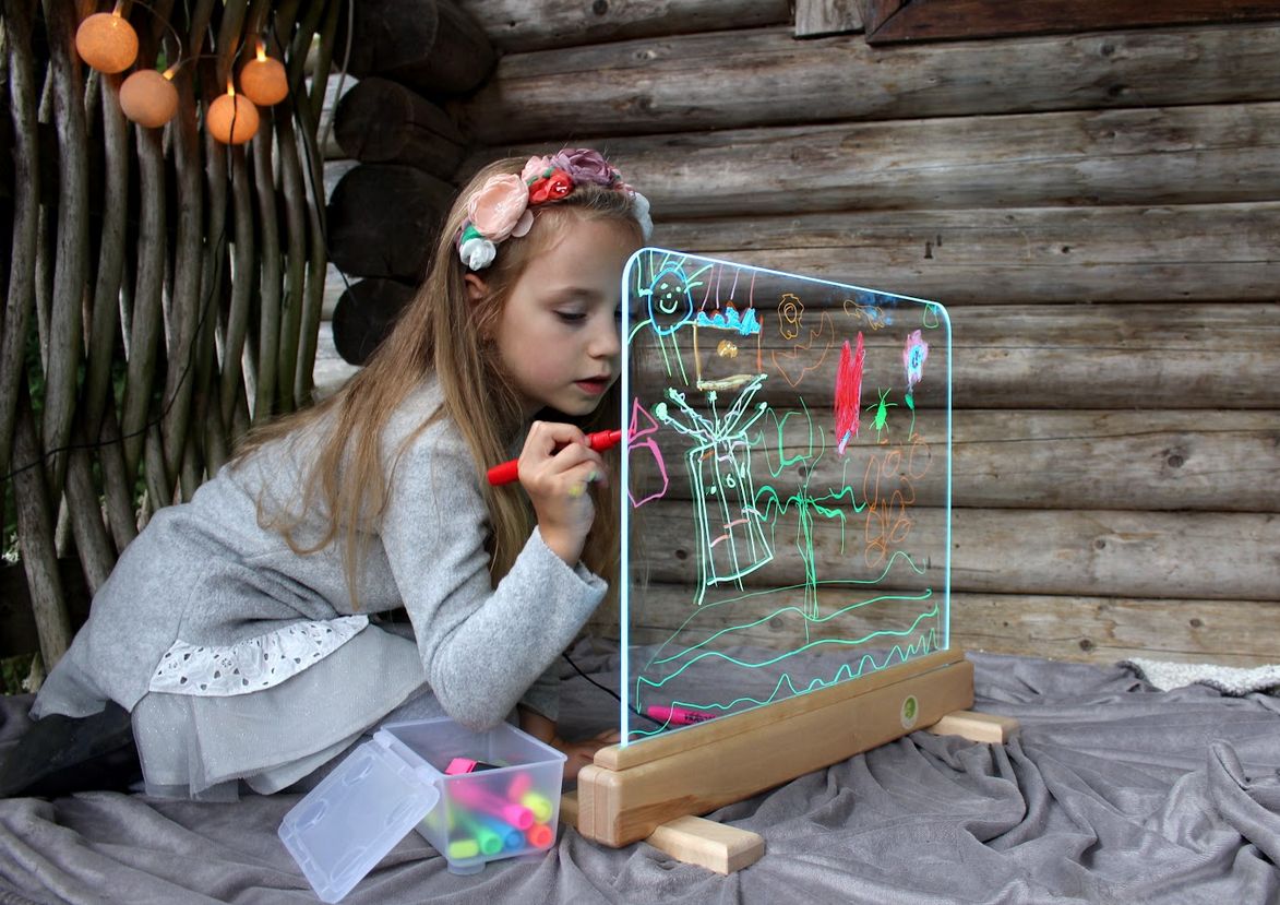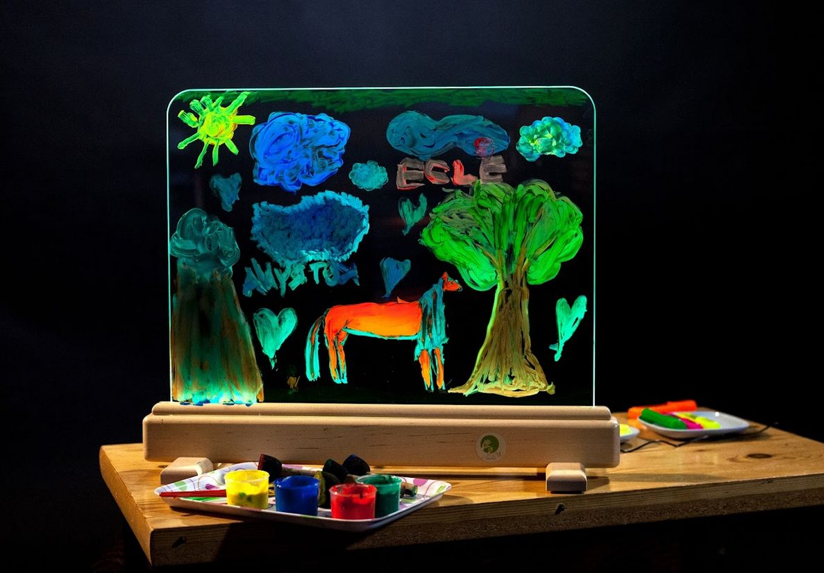 Sie kann beidseitig von zwei Kindern bemalt werden und lädt