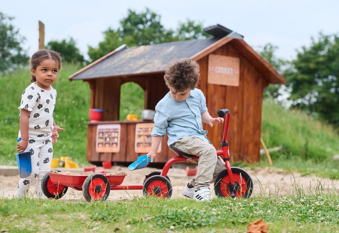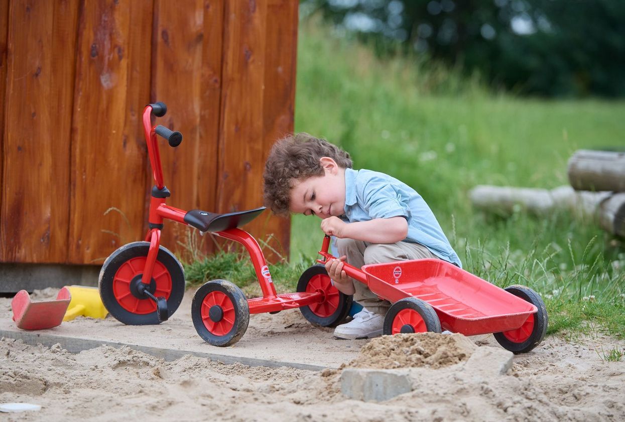 Der Anhänger für die Dreiräder 8600413, 8600414, 8600418 und 8600442 lässt sich einfach an- und auskuppeln. Kleine Kinder können damit Sand oder Spielzeug transportieren. Schönes und sicheres Design ohne scharfe Kanten, stabiles Stahlrohr garantiert maximale Stabilität. Strapazierfähige Nylonlager für die Räder. Effektiver Rostschutz und schlagfeste Pulverbeschichtung für hohe Langlebigkeit. 3 Jahr Garantie auf Rahmen und Gabel. 1 Jahr Garantie auf andere Teile. TÜV-geprüft, CE und EN 71 ⦁ ASTM F963 Für die Altersgruppe 2 bis 4 Jahre - Breite 40 cm, Länge 60 cm, Wannenhöhe 16 cm, Gewicht 3,8 kg. Farbe: rot / schwarz