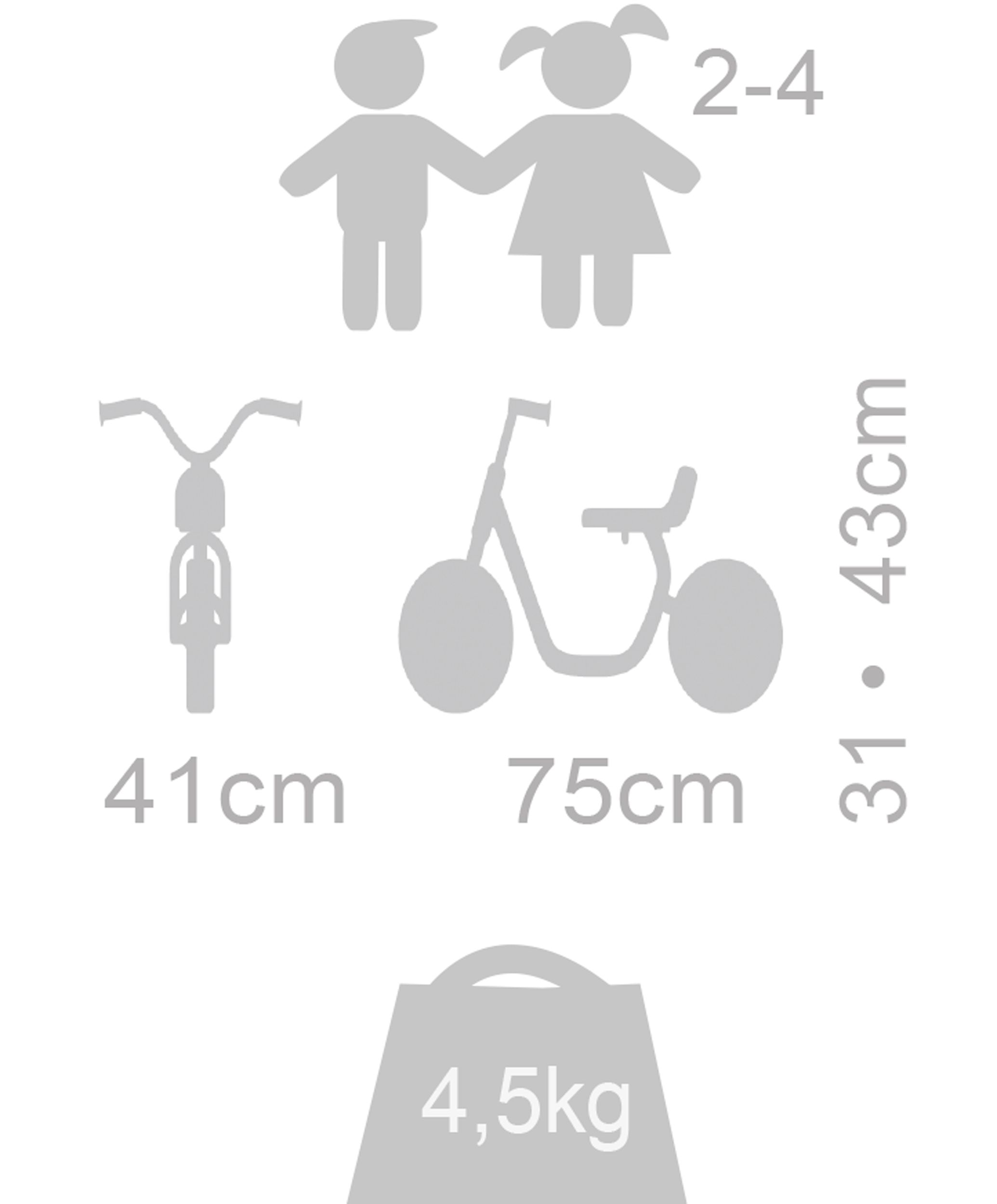 Entspannt cruisen! Dieses tolle Gefährt bietet ein besonderes Fahrgefühl dank seines tiefen Sitzes mit Lehne und der hohen Lenkvorrichtung. Der Sitz lässt sich je nach Kindergröße passend verstellen.Details:⦁ Verstellbarer Sitz⦁ Lenkeinschlag und Anschlagdämpfer für mehr Sicherheit⦁ Robuster, pulverbeschichteter Rahmen für höchste Stabilität und stoßfeste Lackierung⦁ Lange wetterfeste Kunststoffsitze-passend für verschiedene Altersgruppen⦁ Räder mit geschlossenem, dauergeschmierten Industriekugellager für leichtes Fahren⦁ Speichenlose Räder⦁ Hochwertige, massive Achse aus gehärtetem Stahl⦁ Starker Metallrahmen mit 22 mm Durchmesser⦁ Spezialpedale mit Gumminoppen verhindert ein Abrutschen der Füße⦁ Durchgeschäumte EVA-Reifen für lange Lebensdauer und leises Fahren⦁ Robuste Handgriffe mit verstärkter Kappe und Gumminoppen für soliden Halt⦁ Wissenschaftlich getestet⦁ Entwickelt mit einem Team aus führenden Pädagogen, Ingenieuren und Produktdesignern⦁ 5 Jahre Garantie auf den Rahmen⦁ 1 Jahr Garantie auf alle beweglichen Teile⦁ Umfassender Ersatzteil-Service⦁ Geprüft nach EN 71Lenkerhöhe: 66 cmSitzhöhe: 17 cmLänge: 96 cmBreite: 59Lenkerbreite: 48 cmGewicht: 11,0 kgAltersempfehlung: ab 4 Jahre Umfassender Ersatzteilservice