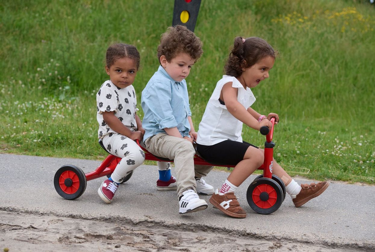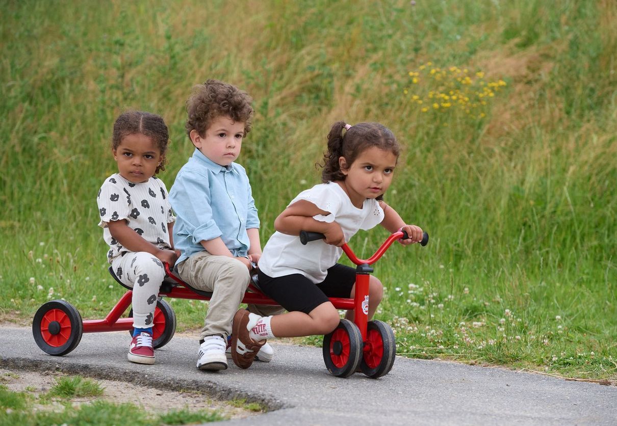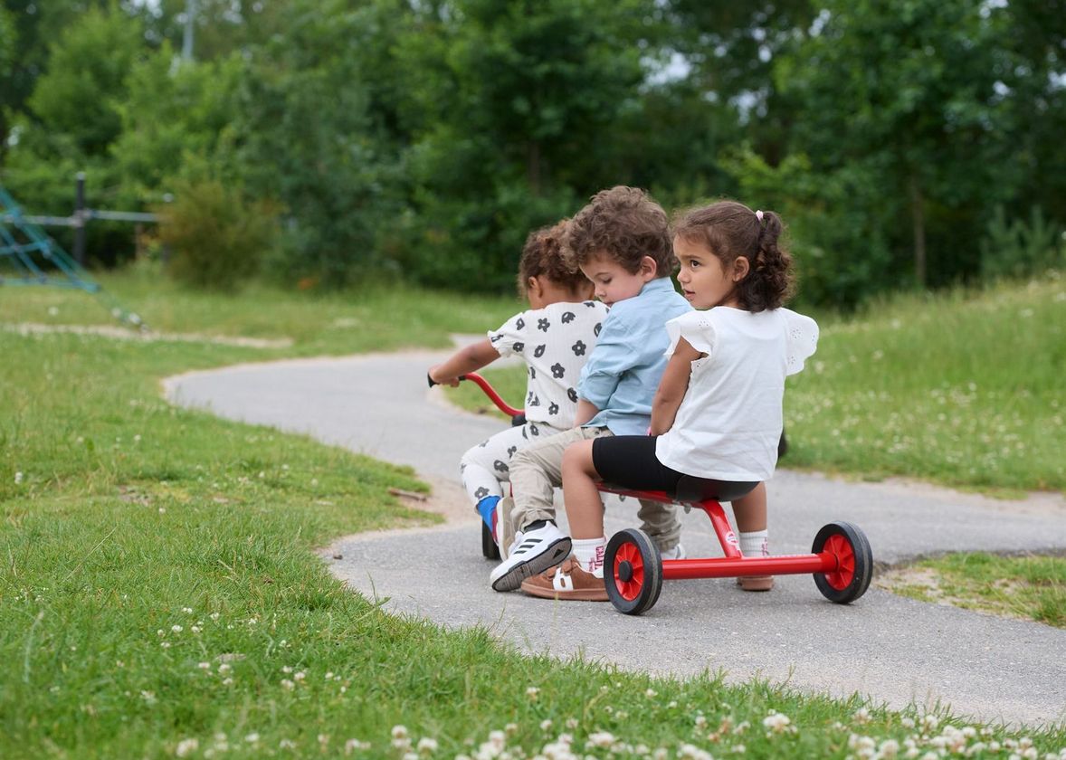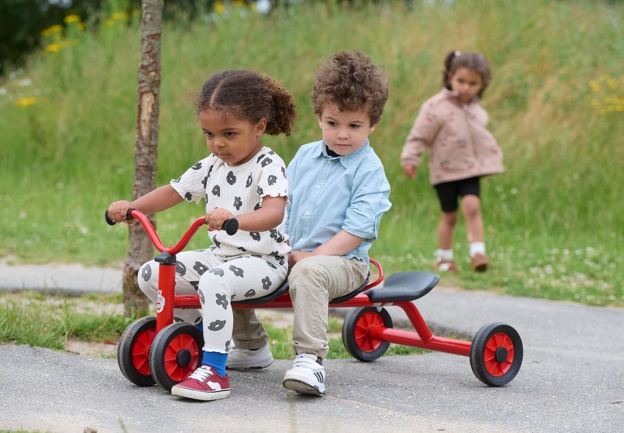 Das Rutsch- und Schiebefahrzeug für drei Kinder zur Stimulanz für viele Rollenspiele.