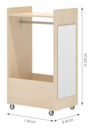 Mobiler Kostümwagen mit vier Lenkrollen und Feststellbremse,