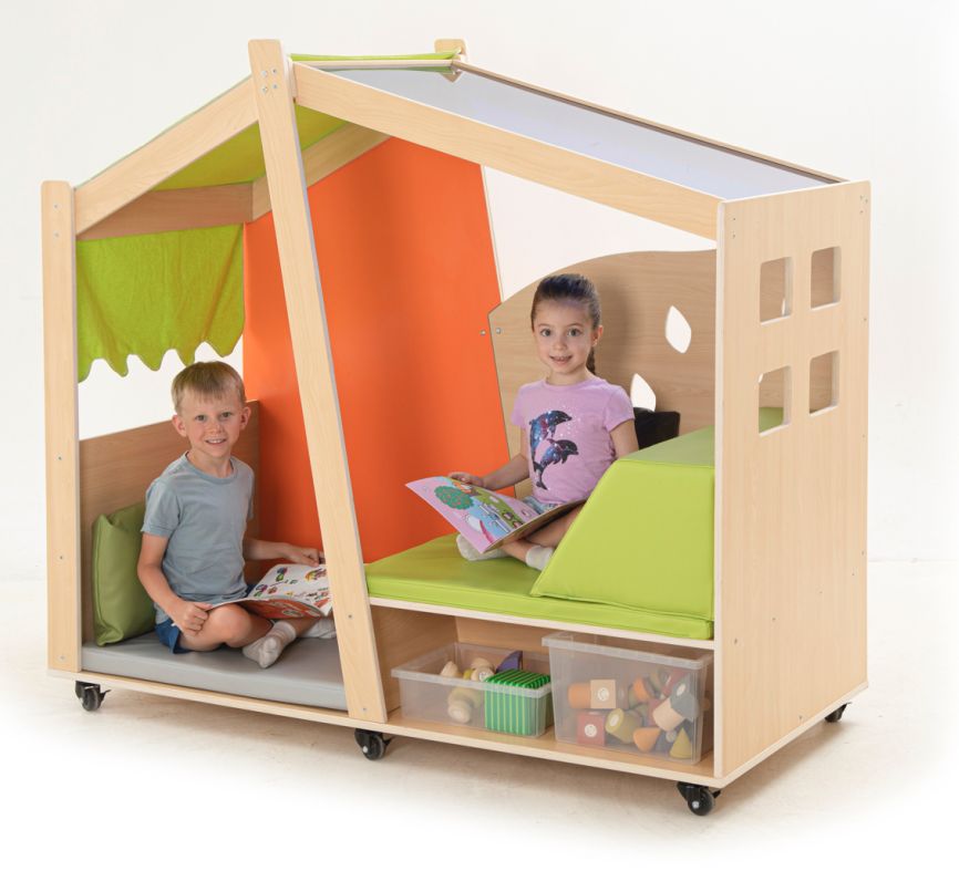 Rollen ist das Spiel- und Lesehaus leicht zu bewegen und kann flexibel