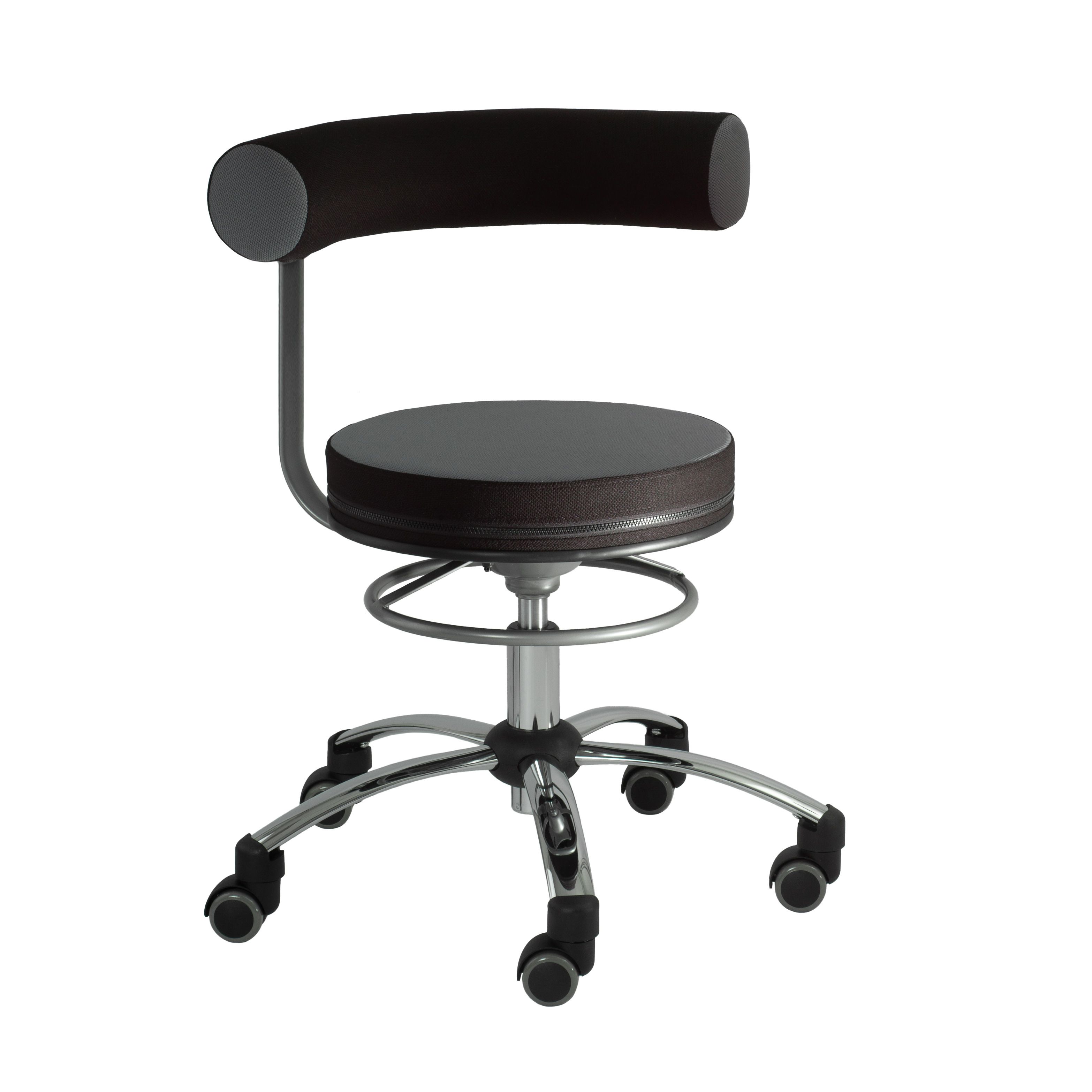 Eine der Hauptursachen für Rückenprobleme und Bandscheibenvorfälle der unteren Lendenwirbelsäule sind Verkürzungen der Hüftbeugemuskulatur infolge einer krummen Sitzhaltung oder zu niedriger Sitzposition. Der Sanus®-Gesundheitsstuhl, entwickelt von Designern in Zusammenarbeit mit Medizinern und getestet von Erziehern, bietet die ideale Prophylaxe gegen Deformationen der Wirbelsäule oder Bandscheiben. Simpel zu bedienen, genial durch seine völlig schwenkbare Lehne im Sitzen und heilsam in seiner Wirkung, weil er eine falsche Haltung einfach nicht zulässt, sollte der Sanus®-Gesundheitsstuhl auch in Ihrer Einrichtung nicht fehlenDetails:· fünf Chromfüße mit Hartbodenrollen (und Rollstopp), kleiner als üblich, machen mobil und ermöglichen auch das Rollen   unter Tische mit gringer Höhe· die aus dem Sitzen heraus vollkommen schwenkbare gepolsterte Lehne (um 360º),  lässt sich in jede nur denkbare   Position drehen: seitlich oder zum Aufstützen der Arme vorn und natürlich nach hinten zur Stützung des Rückens· der praktische Rundring erlaubt das einfache und schnelle Verstellen der Sitzhöhe· runder Polstersitz Ø 38 cm mit hochwertigem Sitzkern· Bezüge (Stoff) durch Reißverschluss leicht austauschbar· Rückenlehne stufenlos höhenverstellbar mit praktischem Feststellkopf· Belastbar bis ca. 110 kgSieben gute Gründe für Ihre Gesundheit· schont die Wirbelsäule· entlastet die Bandscheiben· verhindert die Hohlkreuzausformung· verbessert die Körperwahrnehmung· erhöht die Mobilität· bietet mehr Lebensqualität· fördert dynamisches und aktives Sitzen