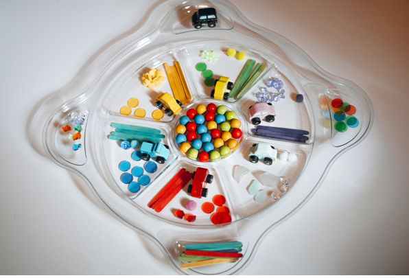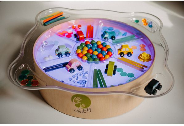 mit Sand, Perlen, Farben und anderen Sensorikmaterial auf dem Leuchtkübel