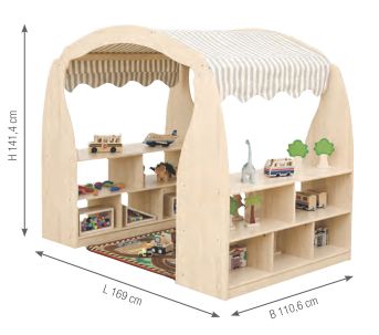 Spielhaus, Raumteiler und Aufbewahrungssystem in einem.