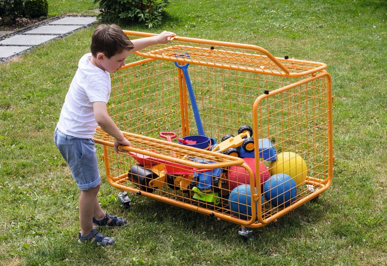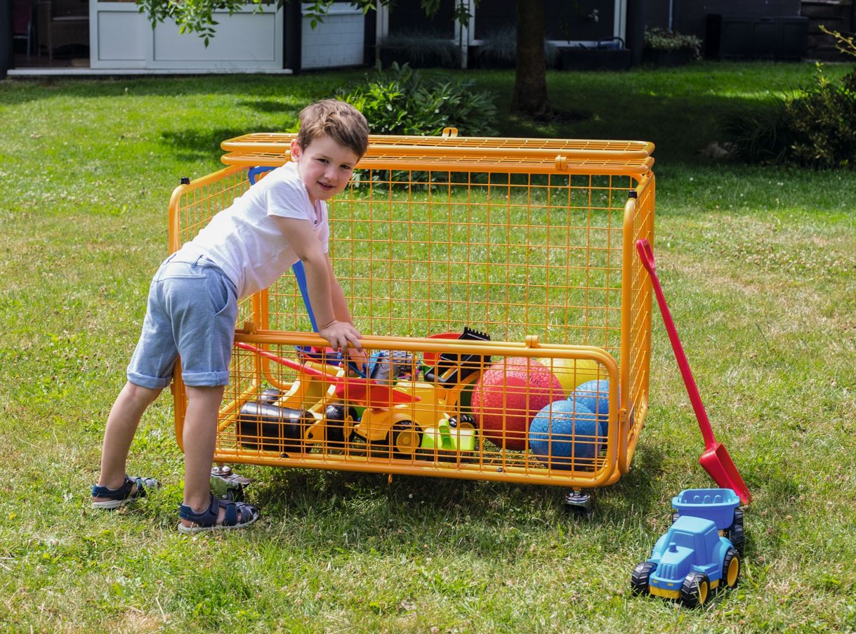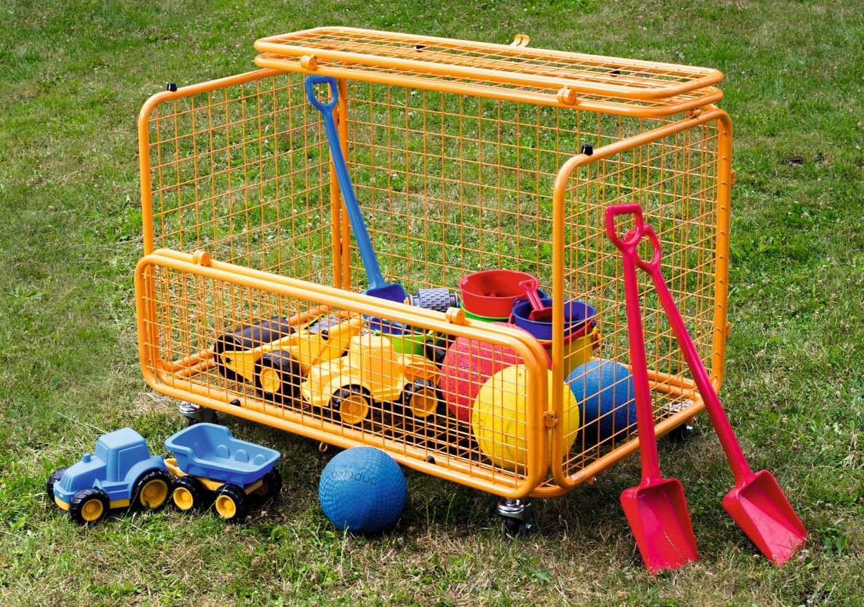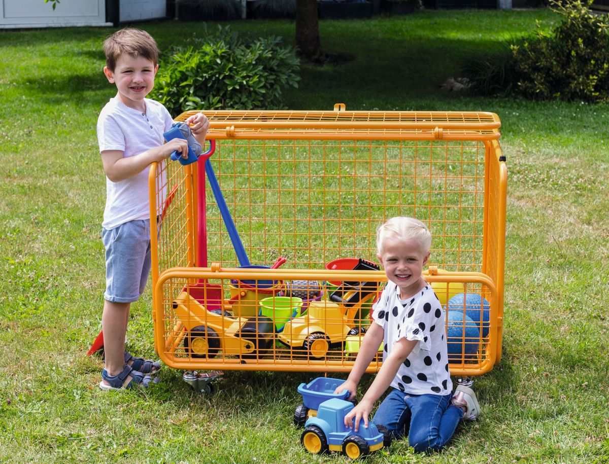 Der stabile Transportwagen eignet sich prima zum Verstauen von Sandspielzeug,