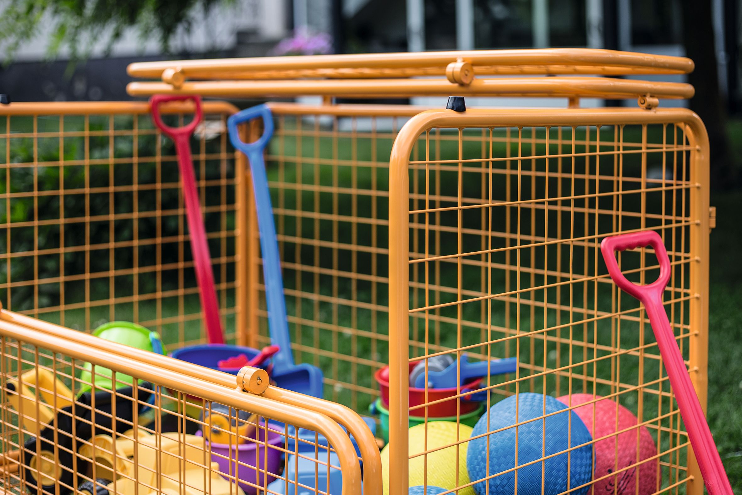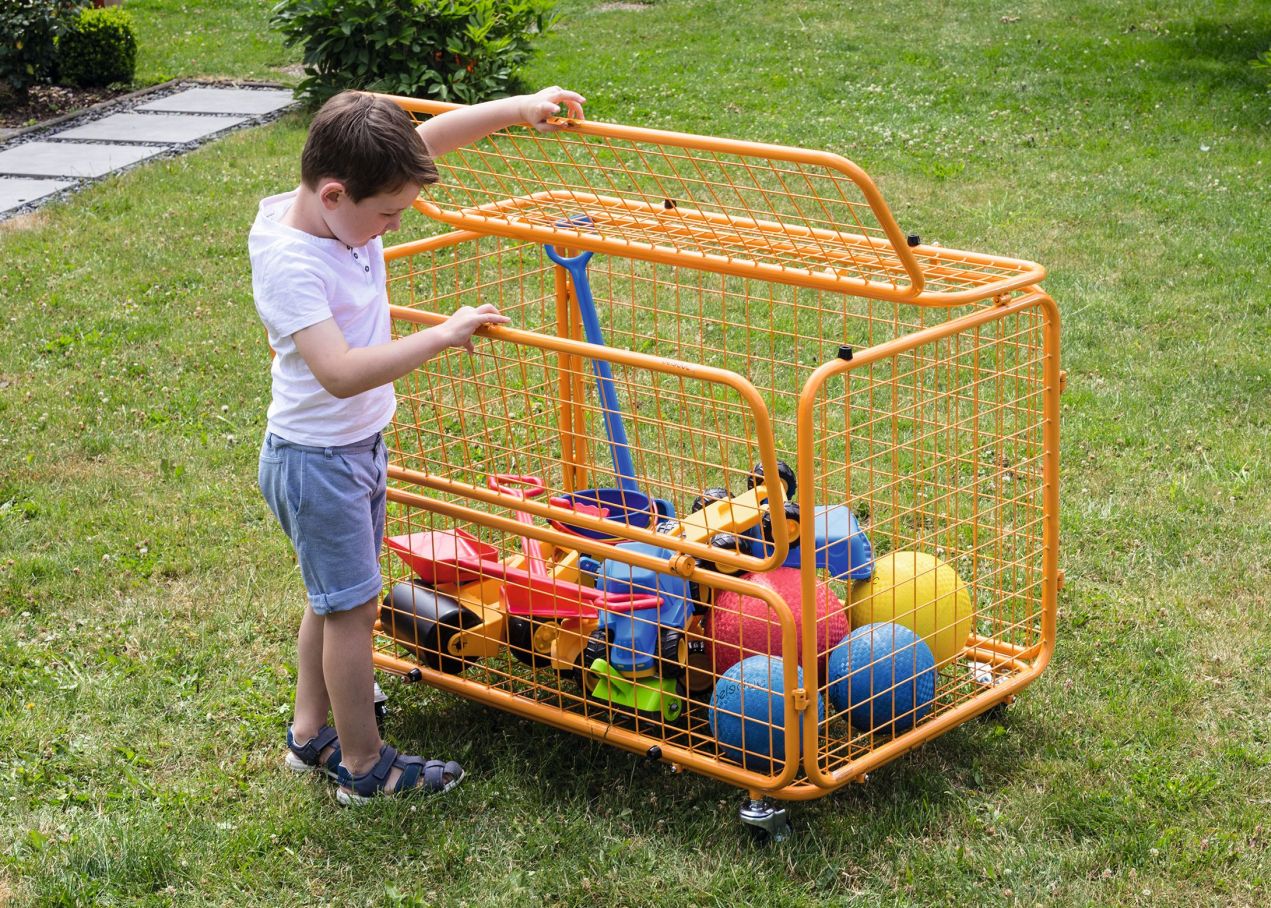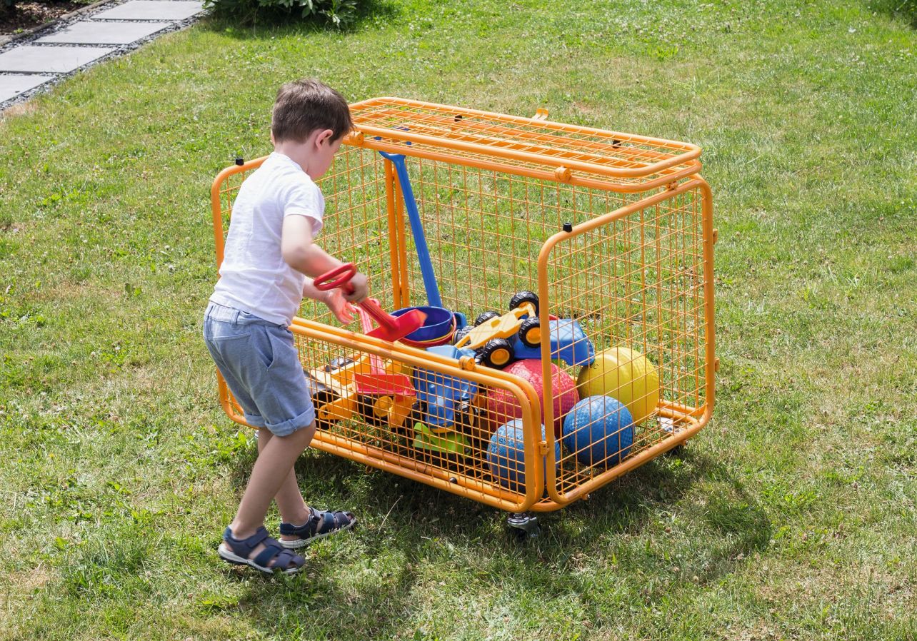 Der stabile Transportwagen eignet sich prima zum Verstauen von Sandspielzeug,