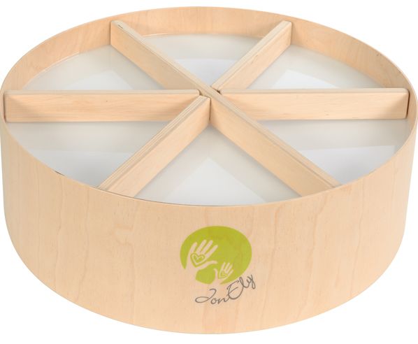 Drei Holzelemente lassen sich zu einem Trennkreuz mit 6 Unterteilungen für den