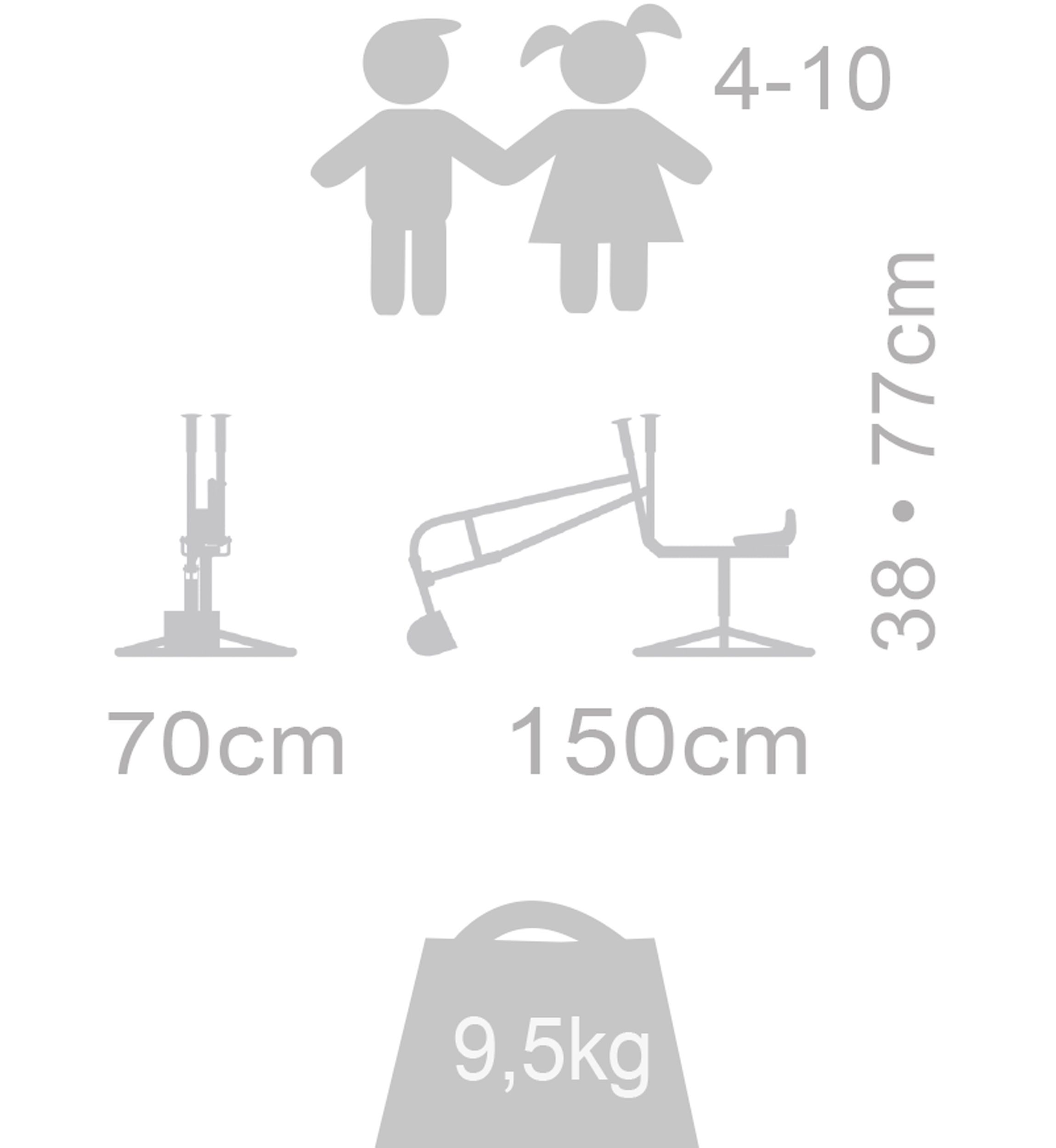 Für die Altersgruppe 4 bis 10 Jahre - Länge 145 cm, Breite 56 cm, Höhe 74 cm, Sitzhöhe 38 cm, Gewicht 10,6 kg