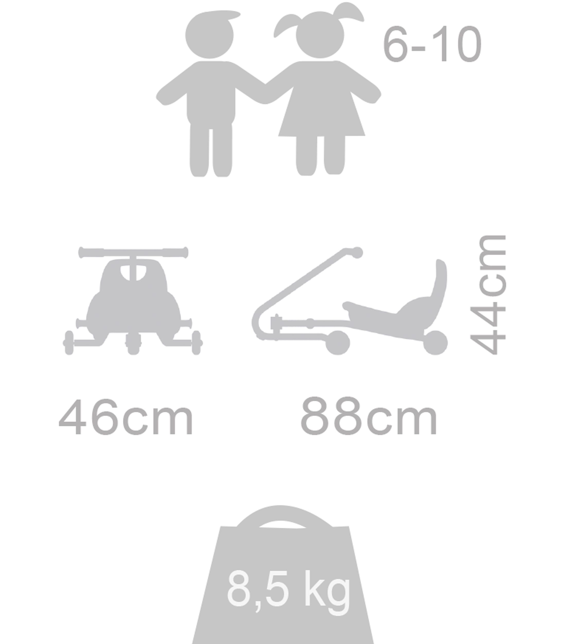 L/B/H: 60 x 60 x 91,3 cmGewicht:⦁ 6,5 kgAltersempfehlung: ab 4 Jahre