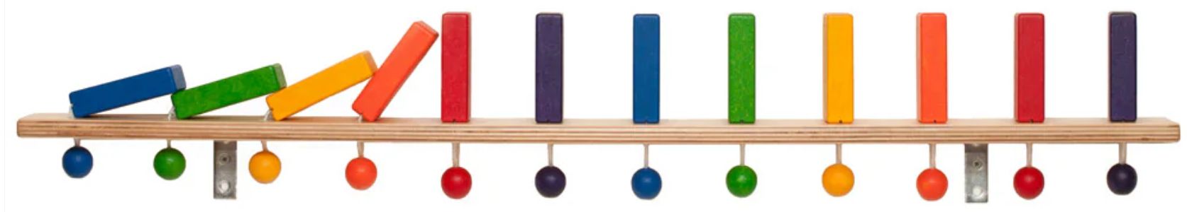 Zieht man an den Kugeln, stehen die Dominosteine auf.