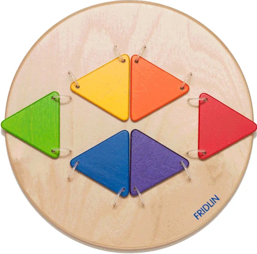 Die sechs regenbogenfarbigen Dreiecke können geklappt