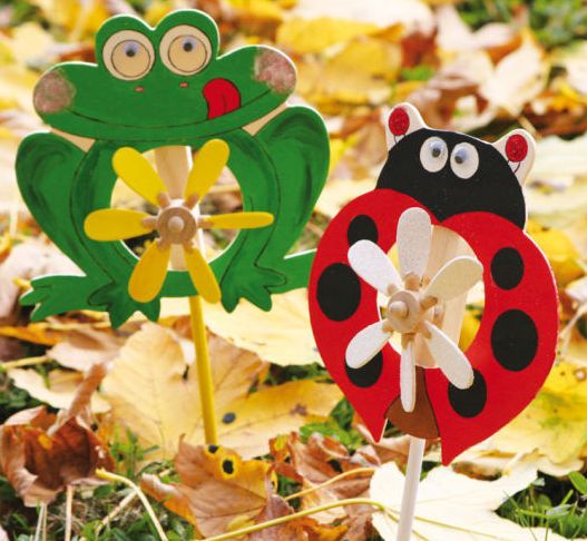 Die lustigen Windräder „Frosch“ und „Marienkäfer“ lassen jeden Garten